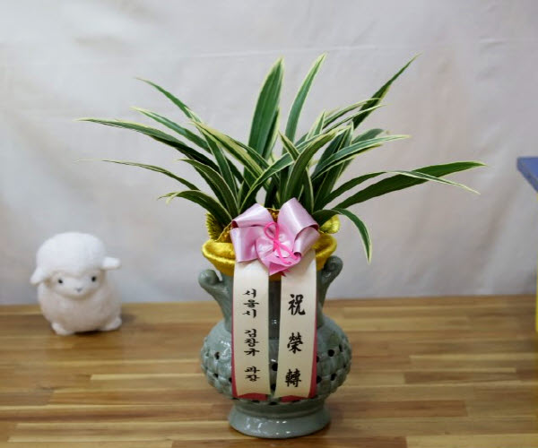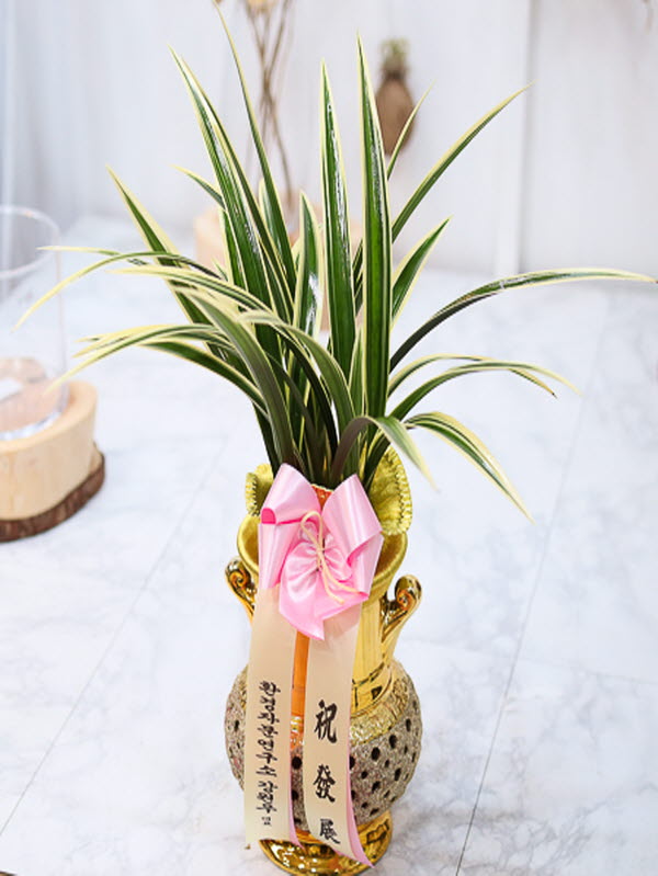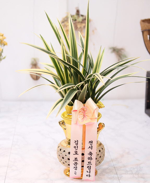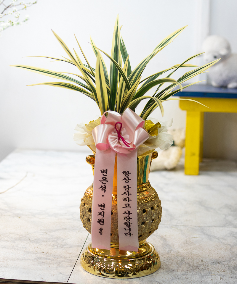 • 진한 노란색 무늬가 들어있어 여성적인 부드러운 잎색상과 자태 또한 아주 부드럽습니다.