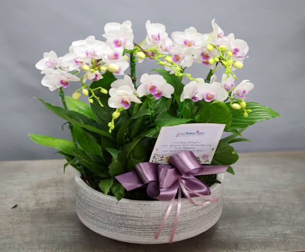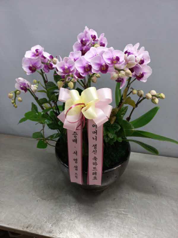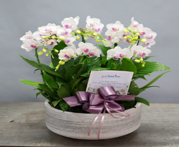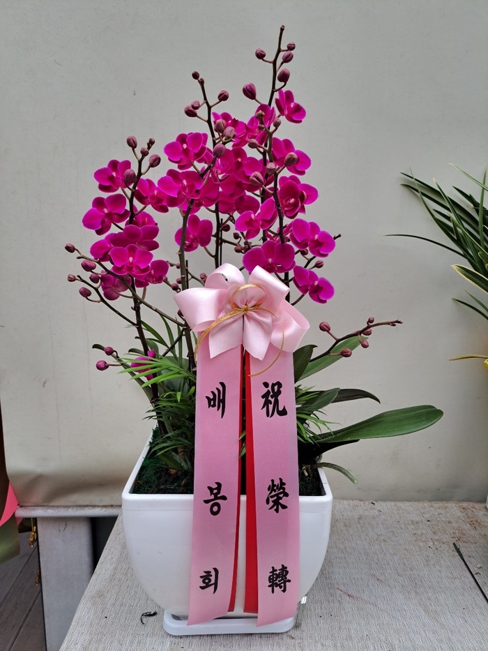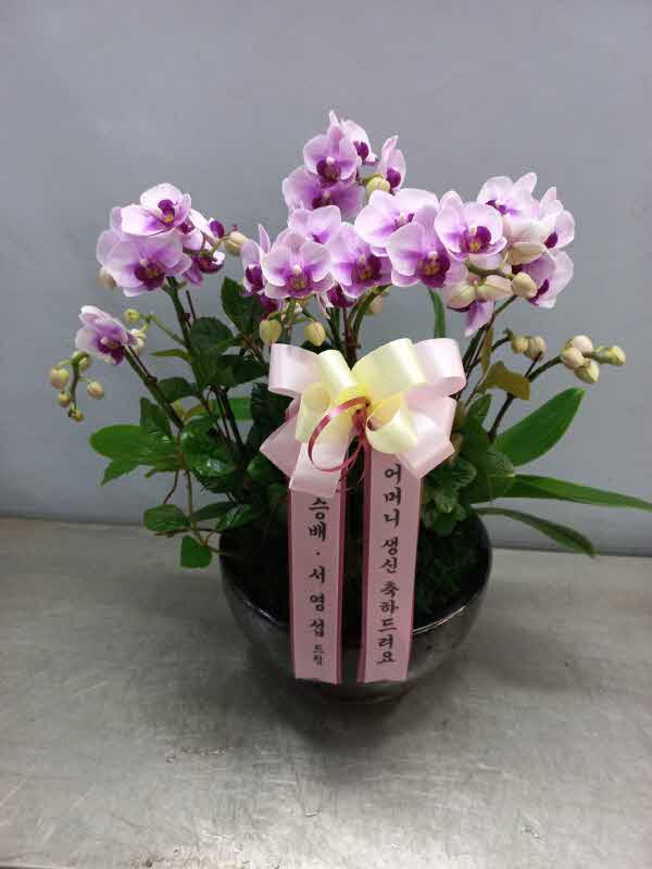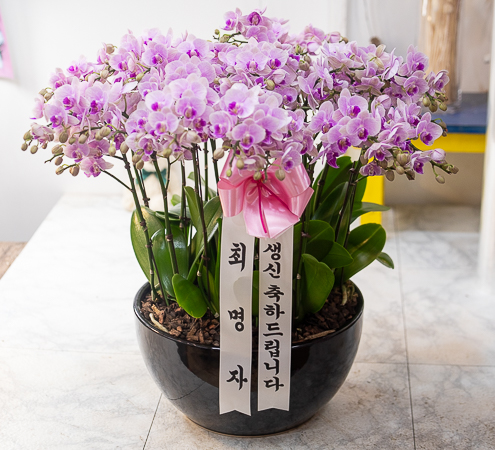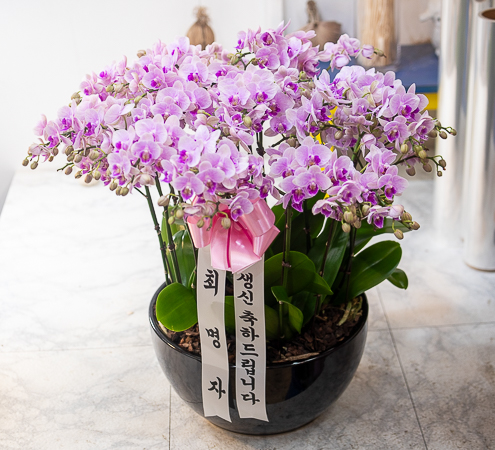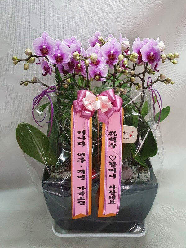 생신,승진, 영전 및 각종 축하용 상품입니다. 이 상품의 꽃은 기존 호접란에 비해 배 이상 오랜 기간 보실 수 있으며, 고급 화분을 사용해서 사무실 책상, 회의실 테이블, 가정 테이블에 놓고 보실 수 있는 호접란입니다.