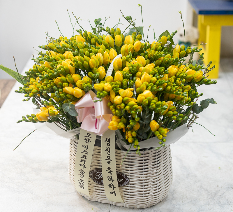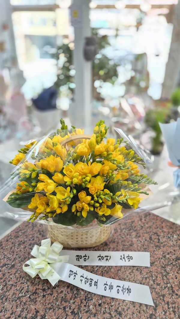 봄에는 후리지아 꽃바구니를 보내주세요.