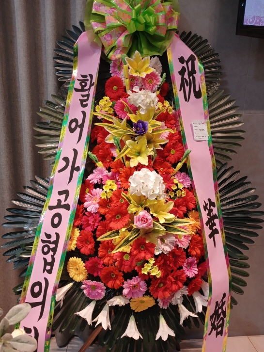 개업,결혼,칠순,준공식,연주회,기념회,발표회등 많은사람이 모이는 장소에서 큰리본과 함께 보내시는분의 정성과 품위를 느끼게 될겁니다.높이는 2m이상입니다.