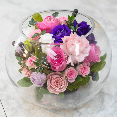 귀엽고 깜찍한 유리볼에 다양한 꽃을 담았습니다.