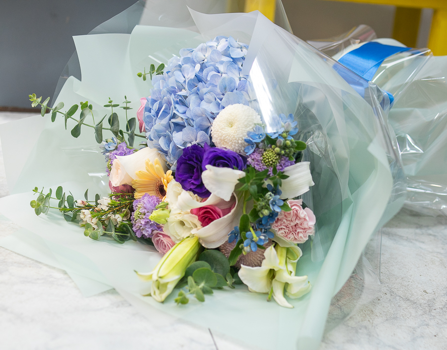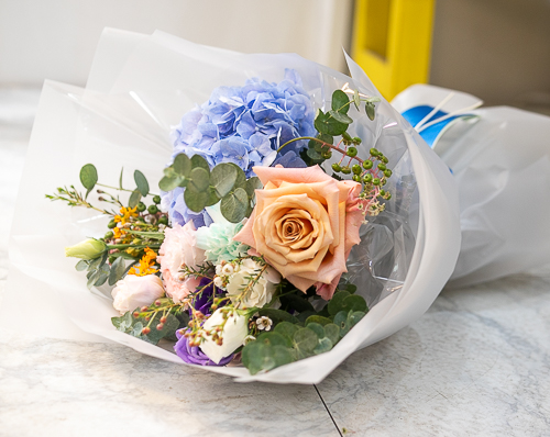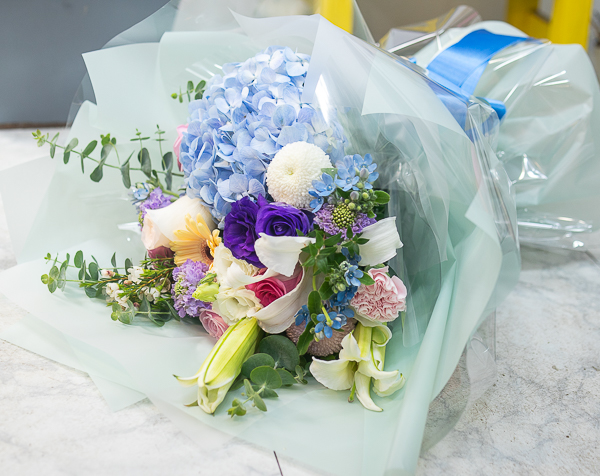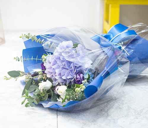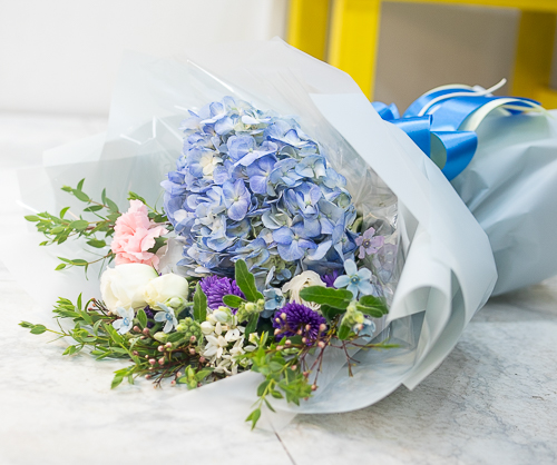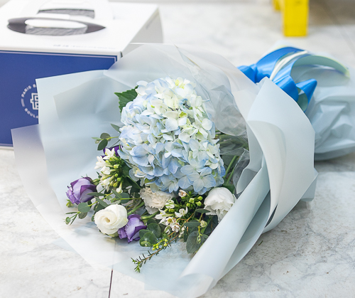 시원한 느낌의 수국으로 꽃다발입니다.