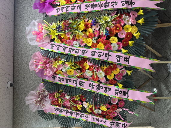 개업,결혼,칠순,준공식,연주회,기념회,발표회등 많은사람이 모이는 장소에서 큰리본과 함께 보내시는분의 정성과 품위를 느끼게 될겁니다.높이는 2m이상입니다.