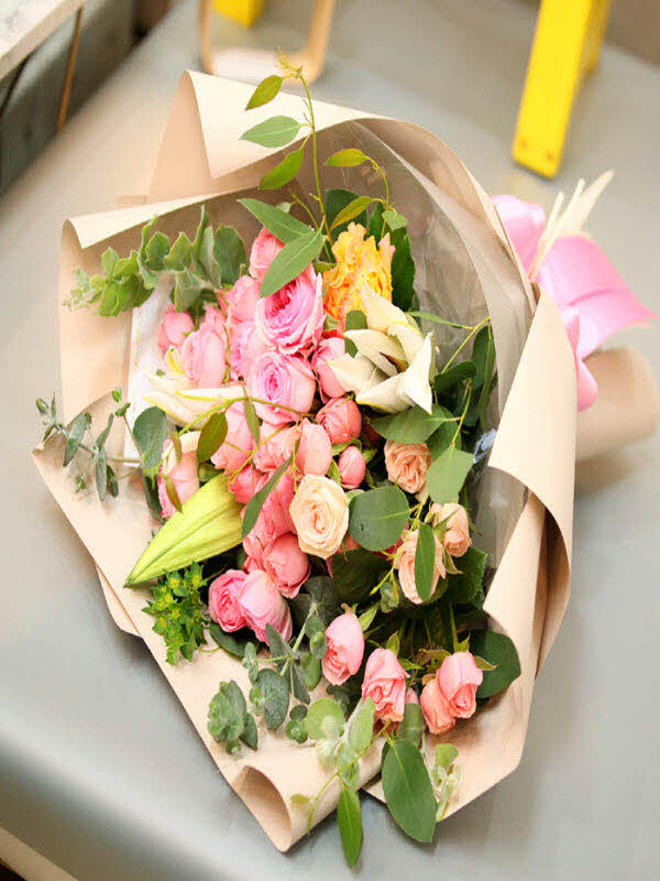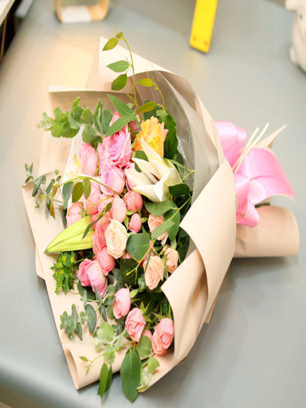 귀여운 장미 자나와 계절꽃으로 만든 다발