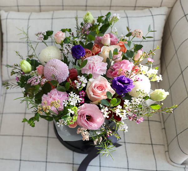 다양한 화형과 색감의 꽃, 소재들이 한데 어우러져서 들판같은 분위기를 줍니다.