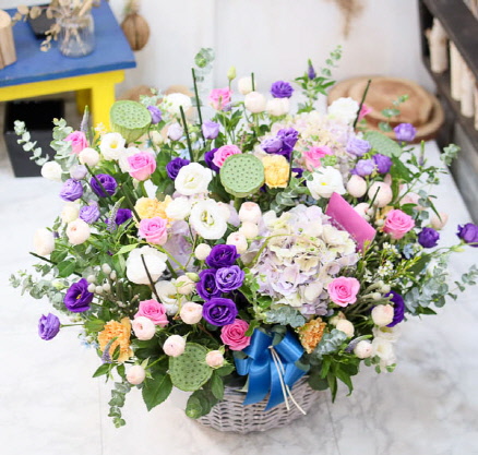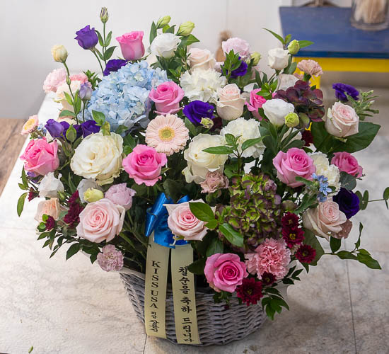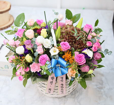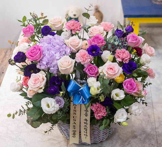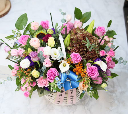 그분의 환한미소가 보이십니까? 세상에서 제일 소중하신 그분에게 오늘은 건강한 미소를 전해드리세요.시원한 리시안사스, 장미와 계절꽃을 사용해 보내시는 분의 마음을 담아 연출하였습니다.