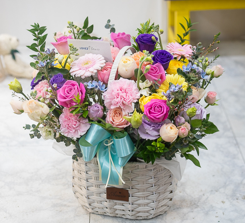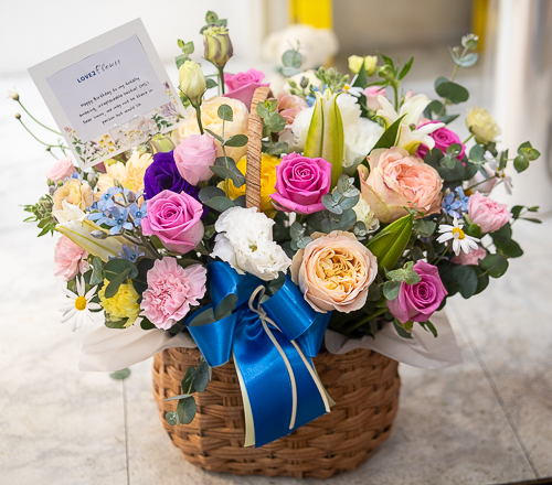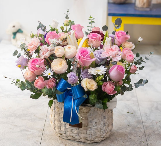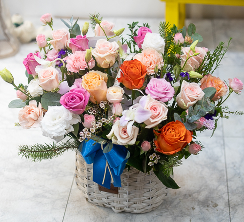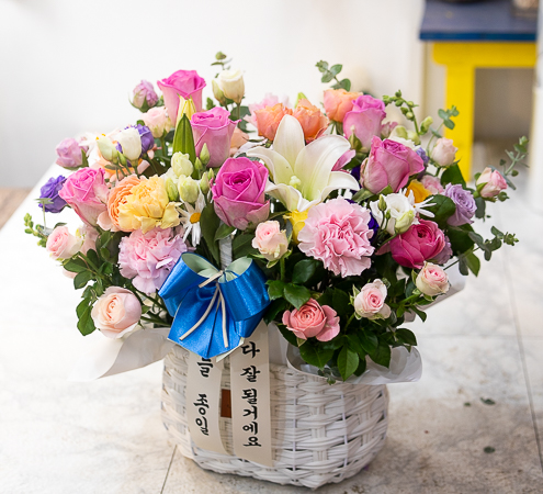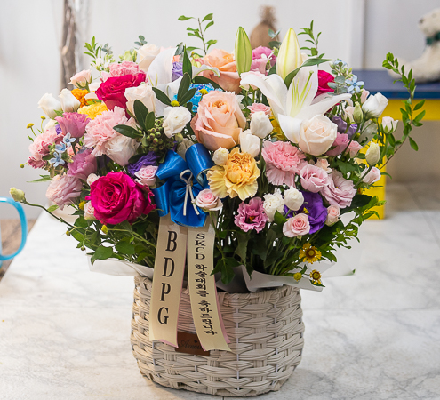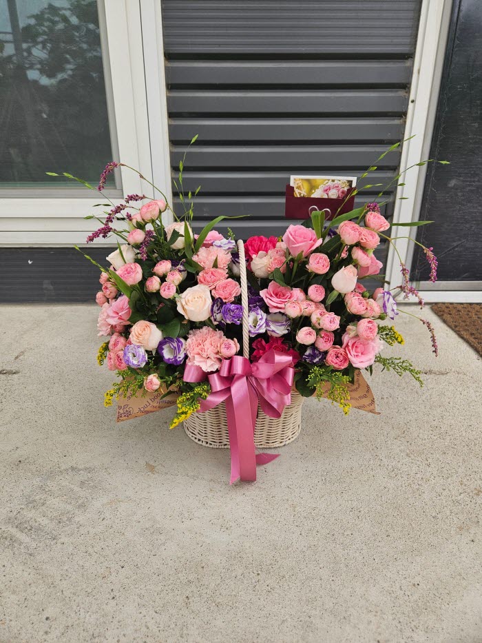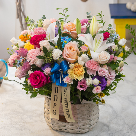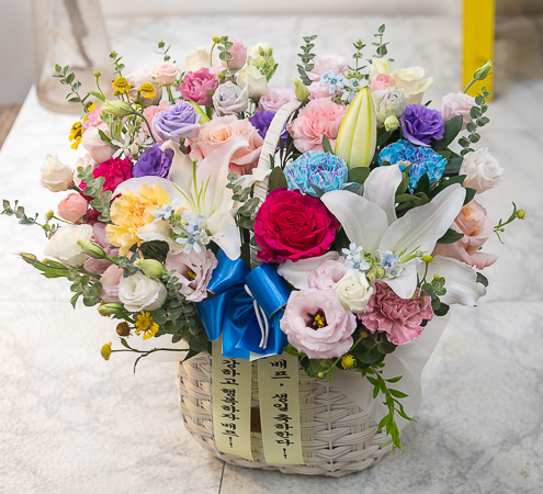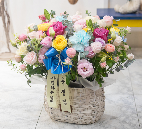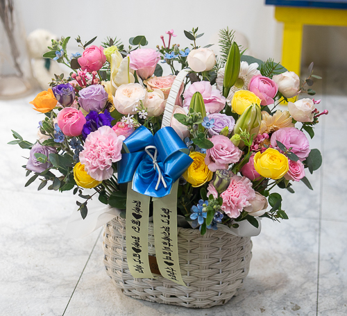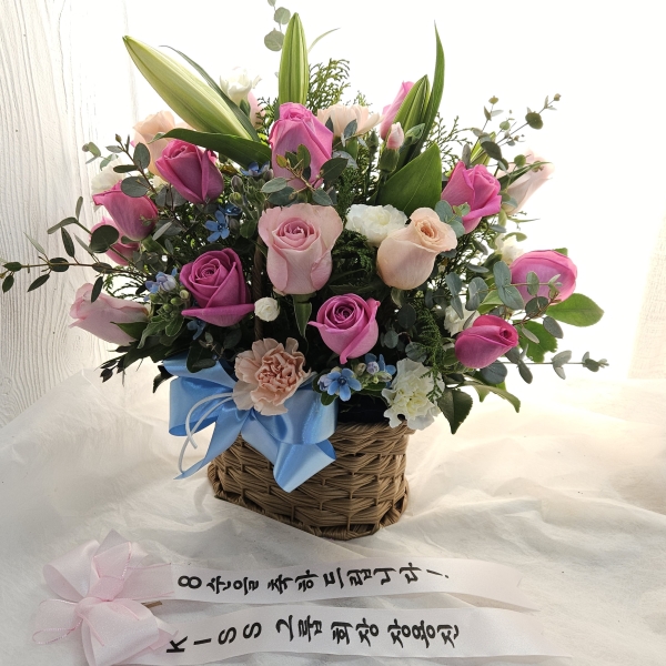 내츄럴한 분위기를 표현하기 위해 장미의 색감과 어울리는 리시안를 사용하였습니다. 바구니의 색감과 잘 어울러진 디자인으로 사랑과 감사의 마음을 전하세요