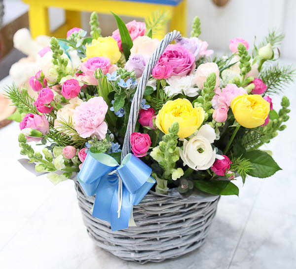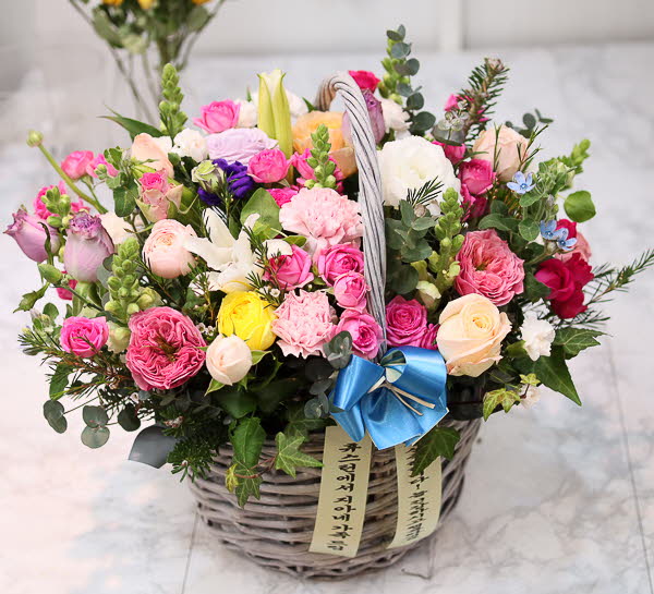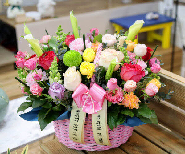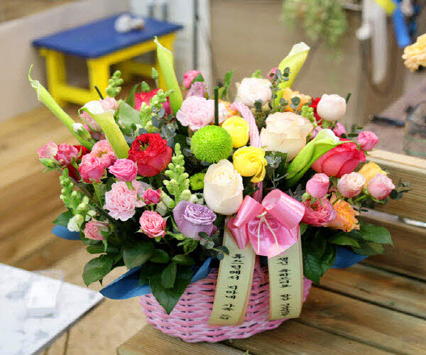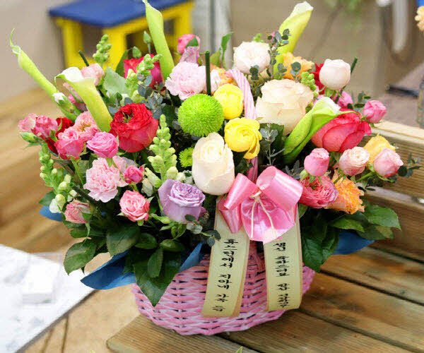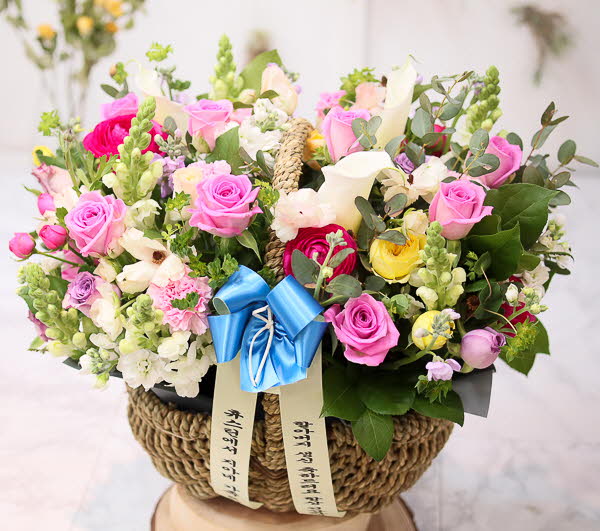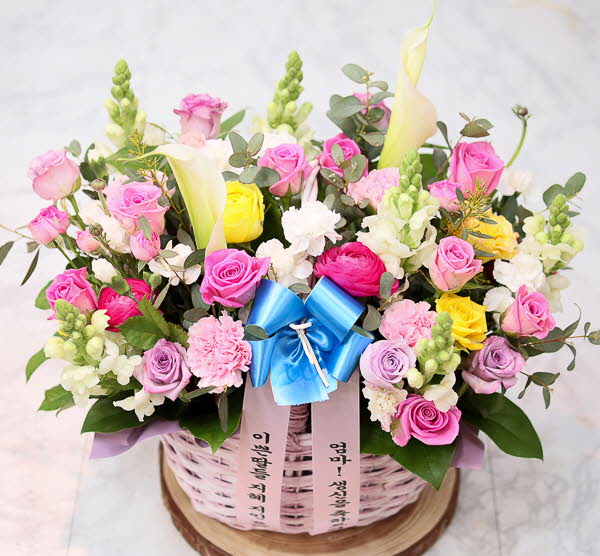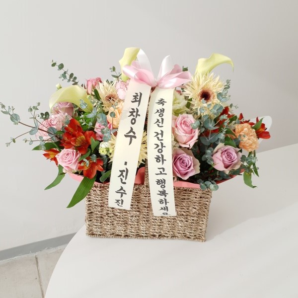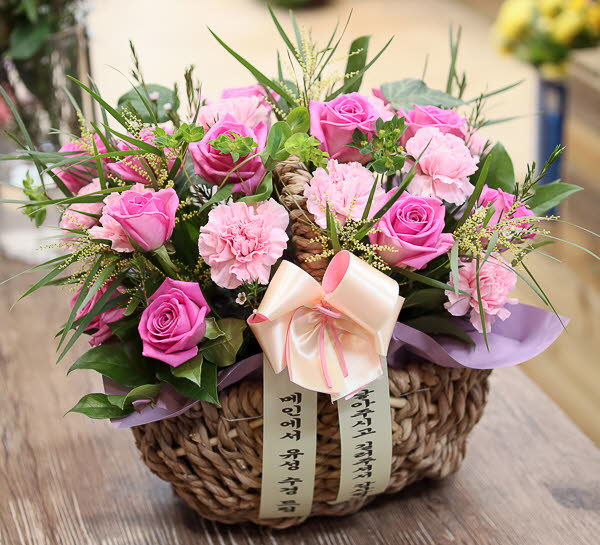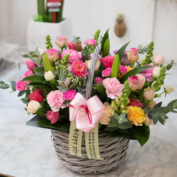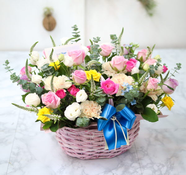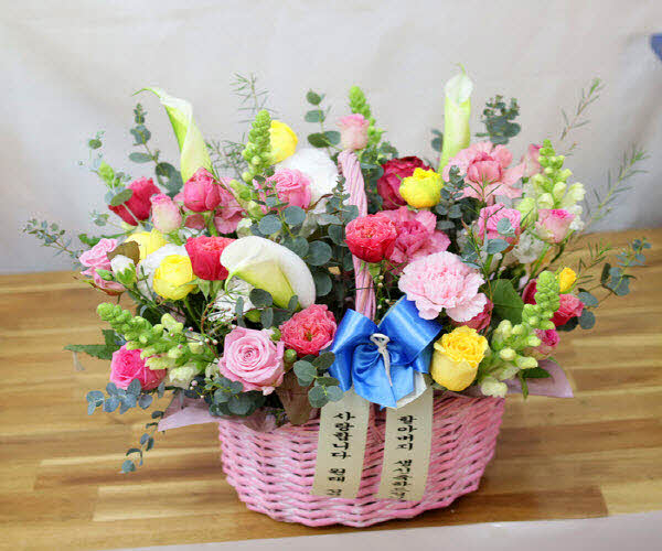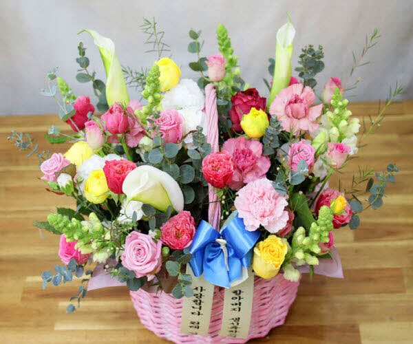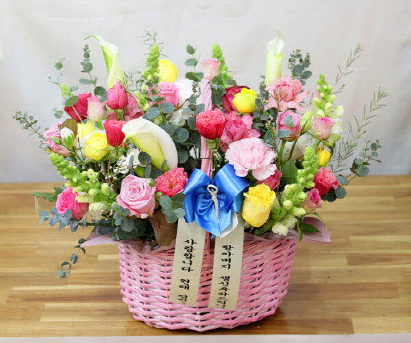 핑크, 화이트, 옐로우 꽃으로 구성되어집니다. 사랑, 감사,축하의 마음을 전해보세요
