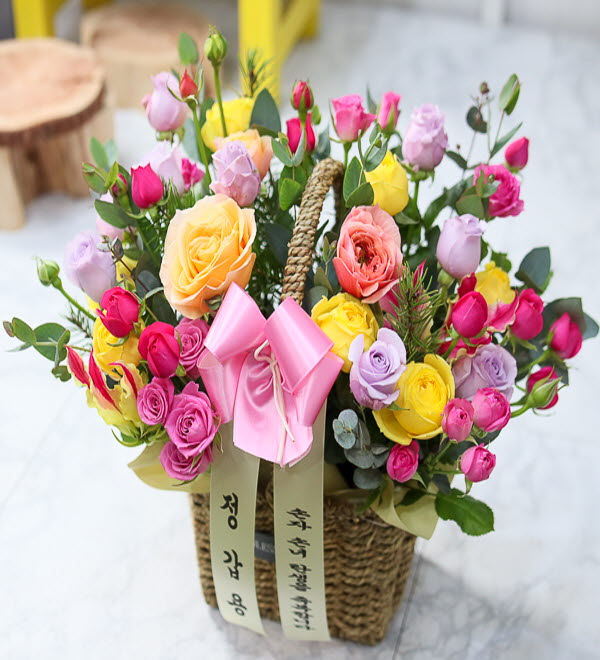핑크색 장미와 계절 꽃으로 사랑의 마음을 전하세요.