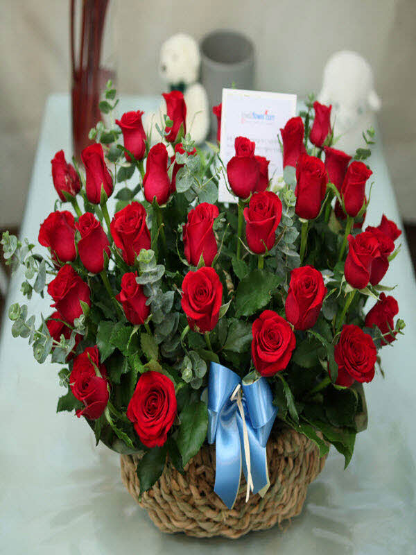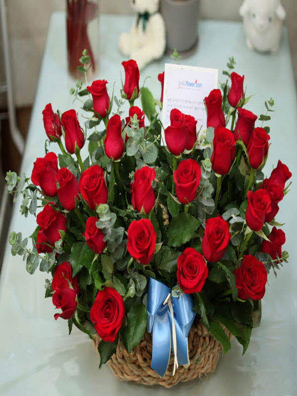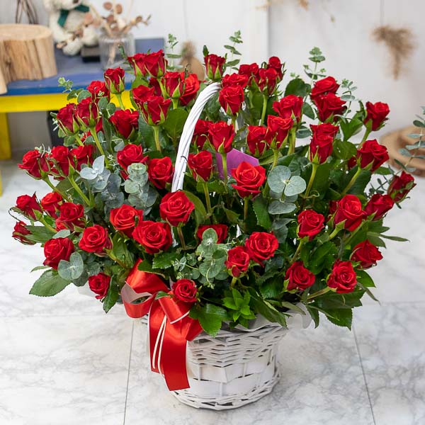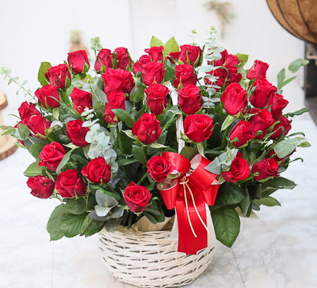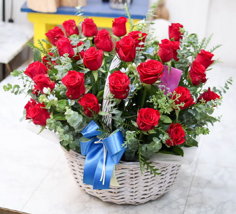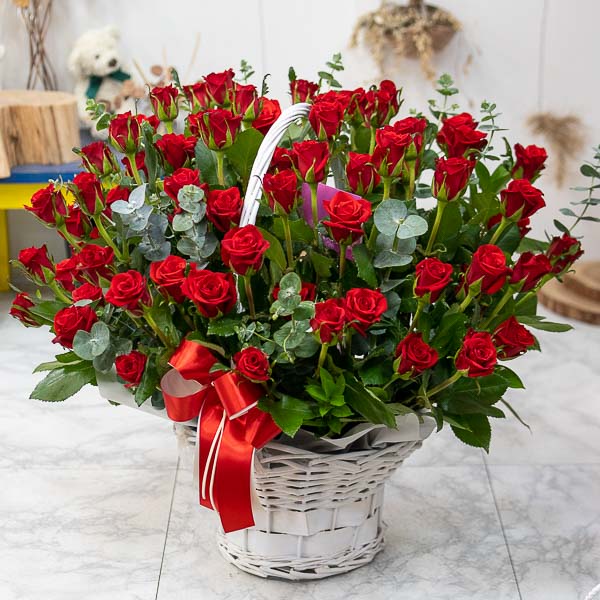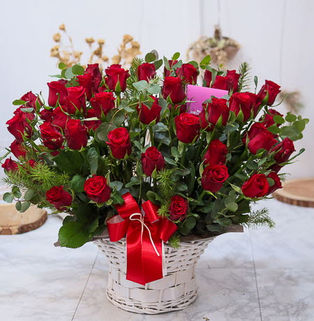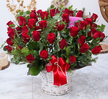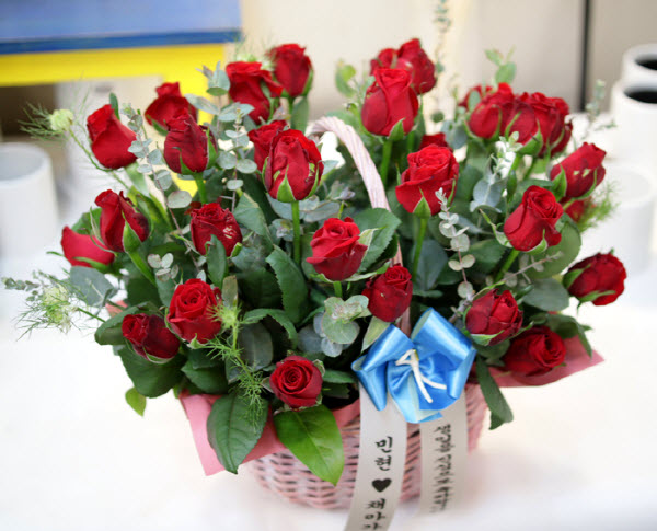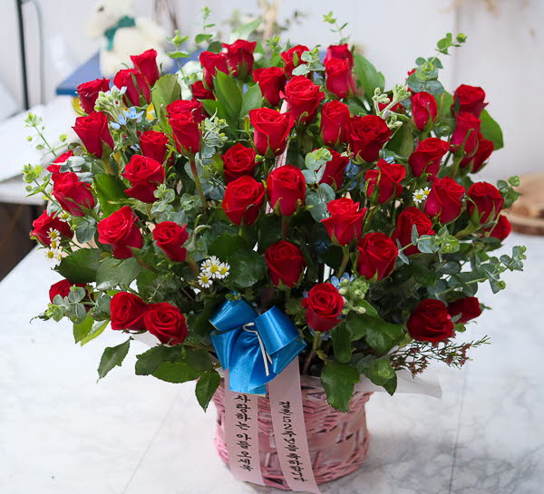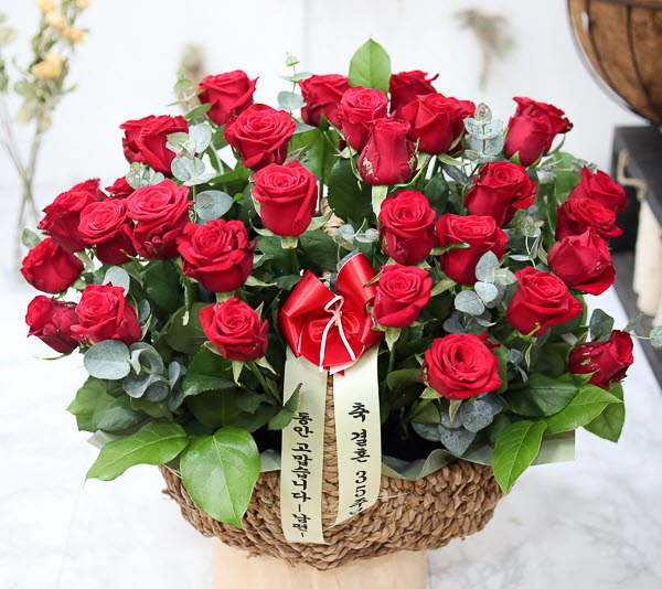 은혜 감사와 존경의 마음을 사랑과 정성을 담아 전해보세요. 환한 미소를 생각하며 세련된 빨강장미를 바구니에 시원한 녹색소재와 함께 담았습니다.