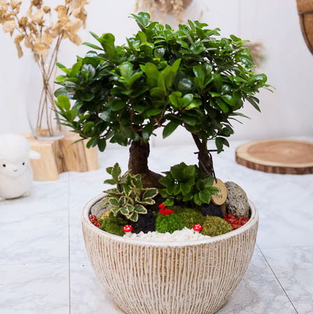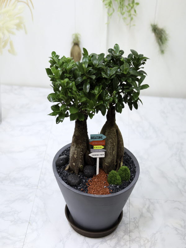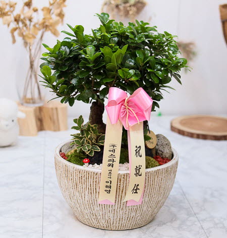 굵은 뿌리와 녹색을 띄고 있는 잎이 잘 조화를 이룬 분재형 상품으로 감사, 축하, 개업, 이전, 승진 축하에 좋은 상품입니다. 뿌리에는 수분을 가지고 있어 여름철에는 7일, 겨울철에는 보름에 한 번 물주기를 하며, 채광을 좋아합니다