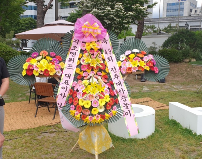 개업,결혼,회갑,준공식,연주회,기념회,발표회등 많은사람이 모이는 장소에서 큰리본과 함께 특별하게 돋보이게 될겁니다. 높이가 2m20cm이상으로 축하화환으로 축하의 마음을 보냅니다.