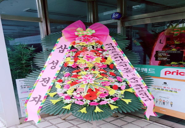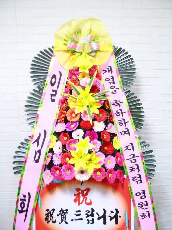 개업,결혼,칠순,준공식,연주회,기념회,발표회등 많은사람이 모이는 장소에서 큰리본과 함께 보내시는분의 정성과 품위를 느끼게 될겁니다.높이가 2m이상으로 축하화환중 제일키가 큼니다.