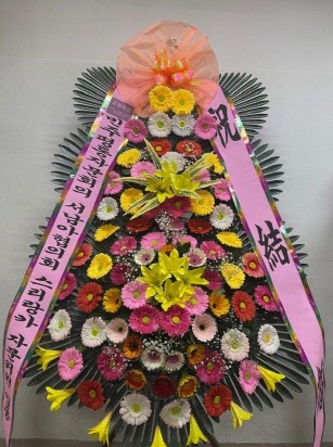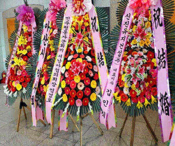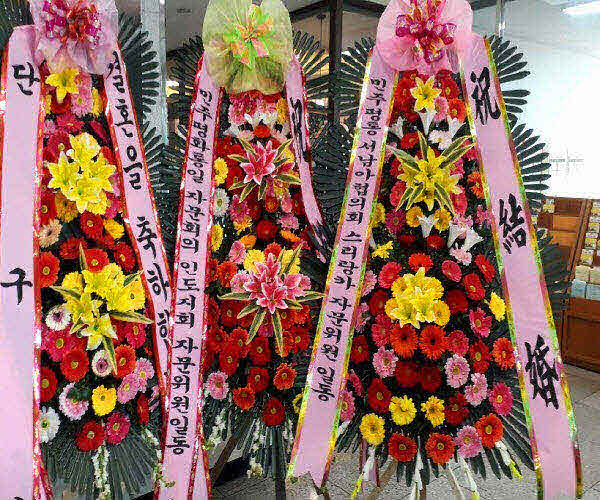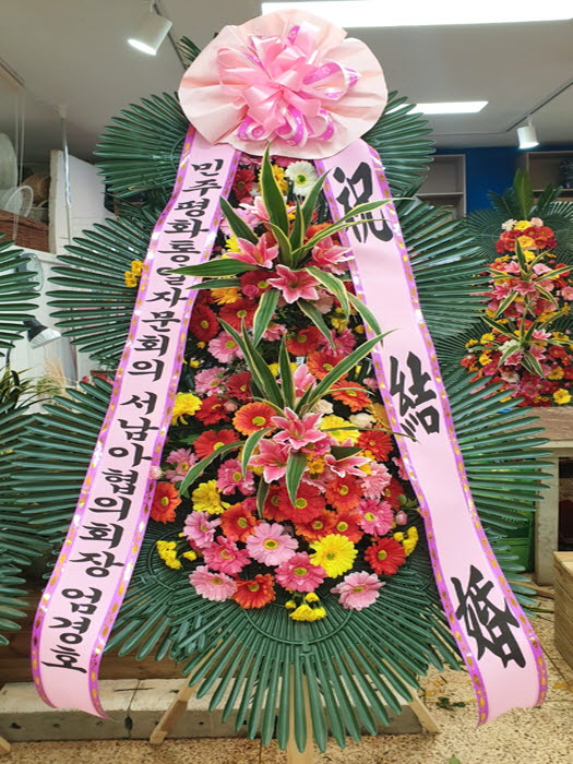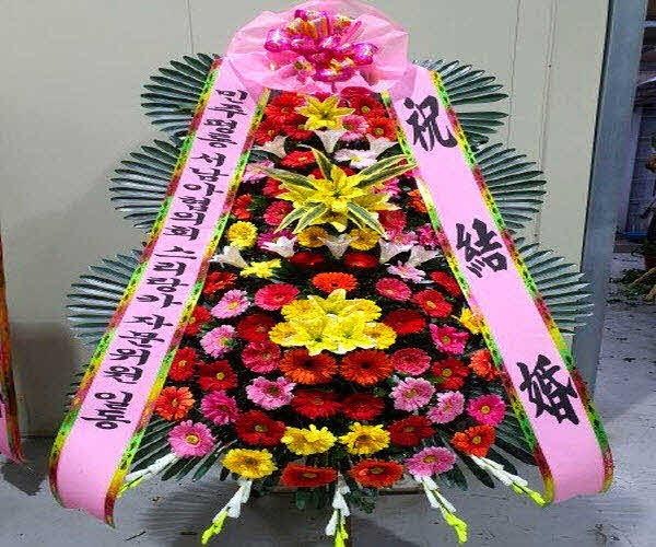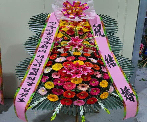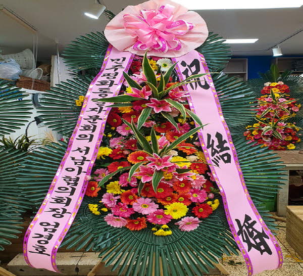 개업,결혼,칠순,준공식,연주회,기념회,발표회등 많은사람이 모이는 장소에서 큰리본과 함께 보내시는분의 정성과 품위를 느끼게 될겁니다.높이가 2m이상으로 축하화환중 제일키가 큼니다.