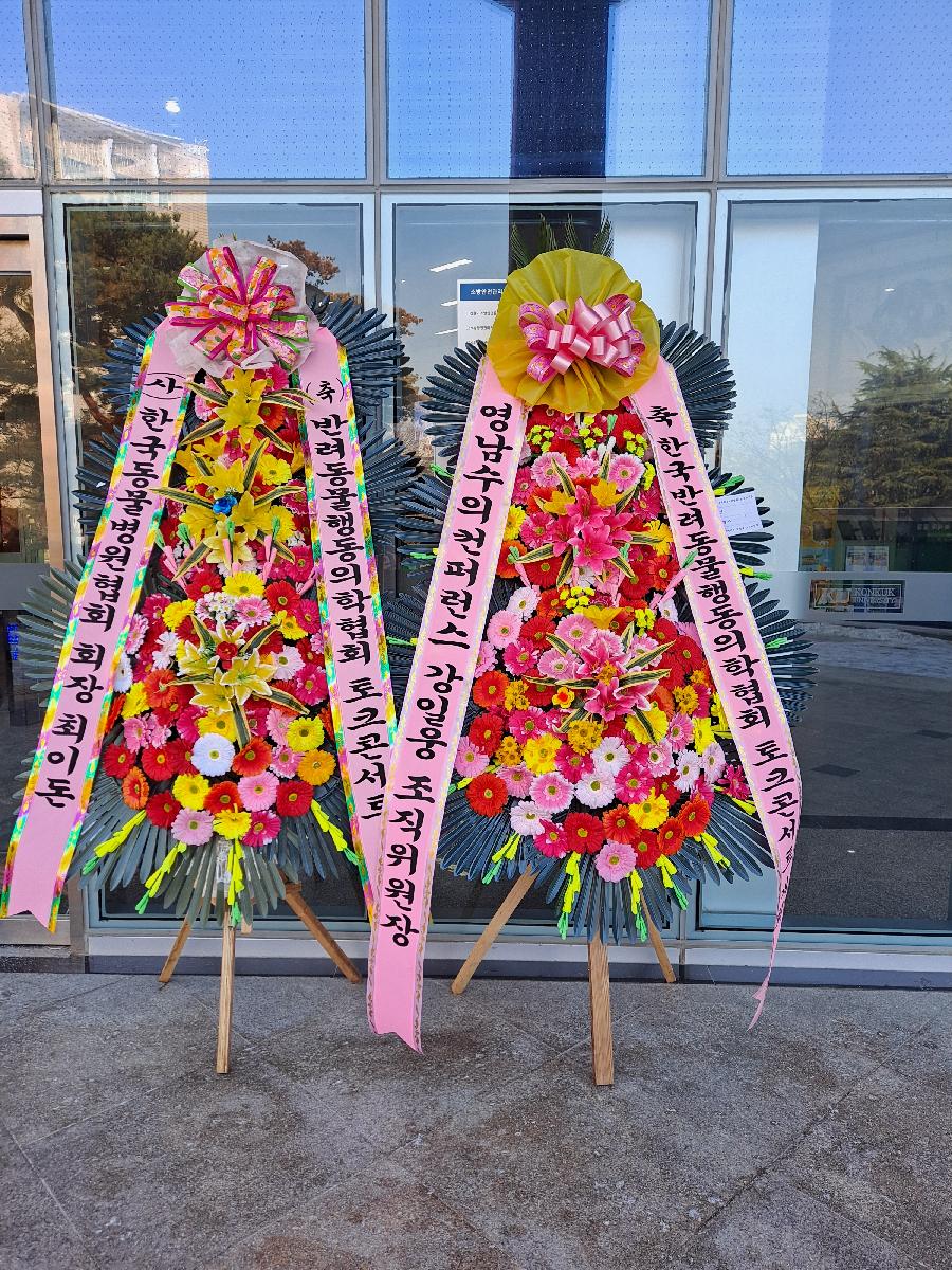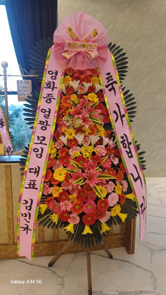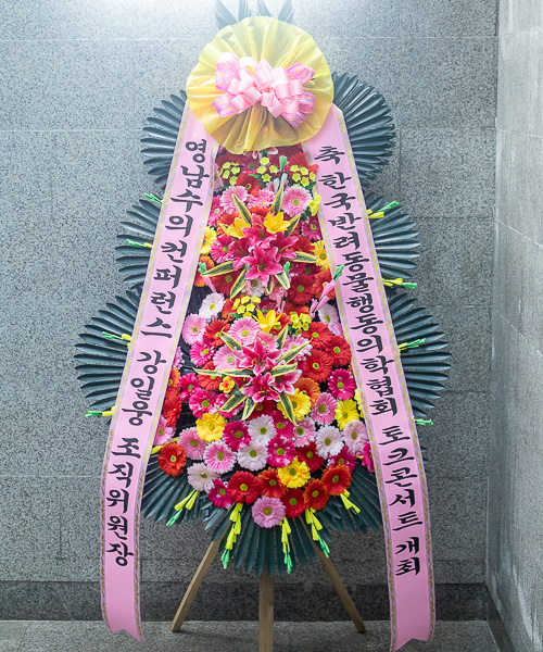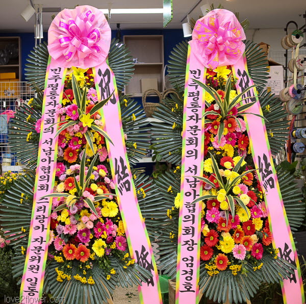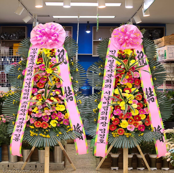개업,결혼,칠순,준공식,연주회,기념회,발표회등 많은사람이 모이는 장소에서 큰리본과 함께 보내시는분의 정성과 품위를 느끼게 될겁니다.높이가 2m20cm이상으로 축하화환중 제일키가 큼니다.