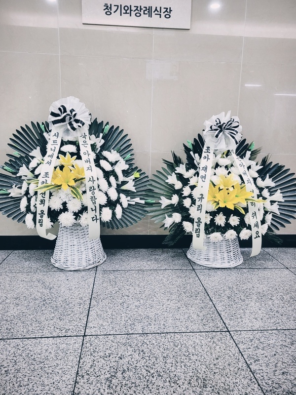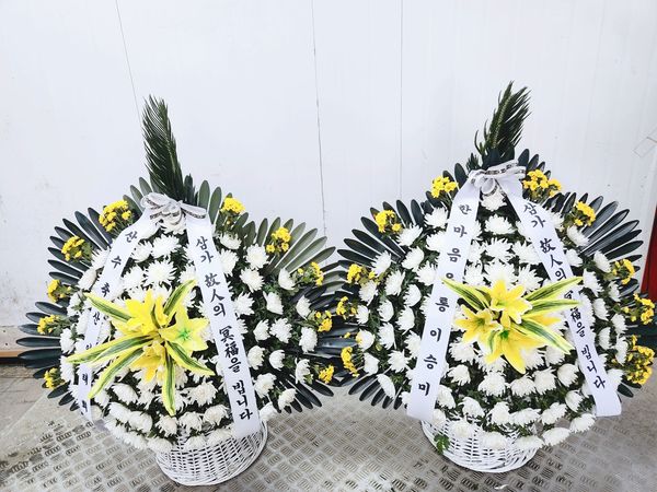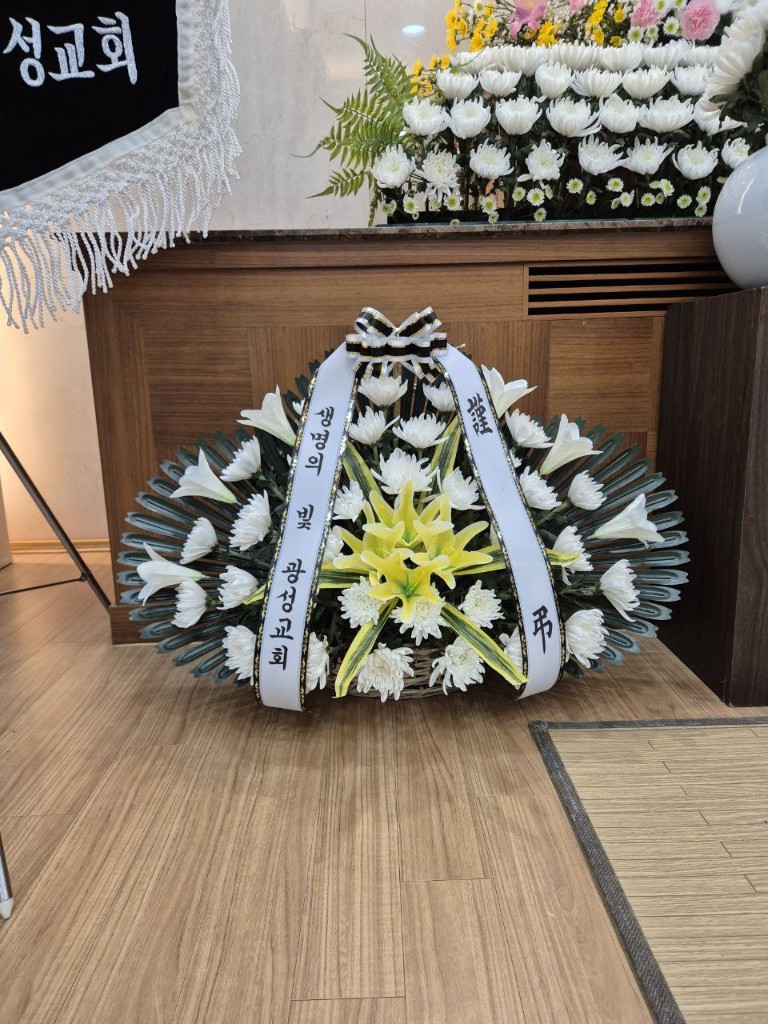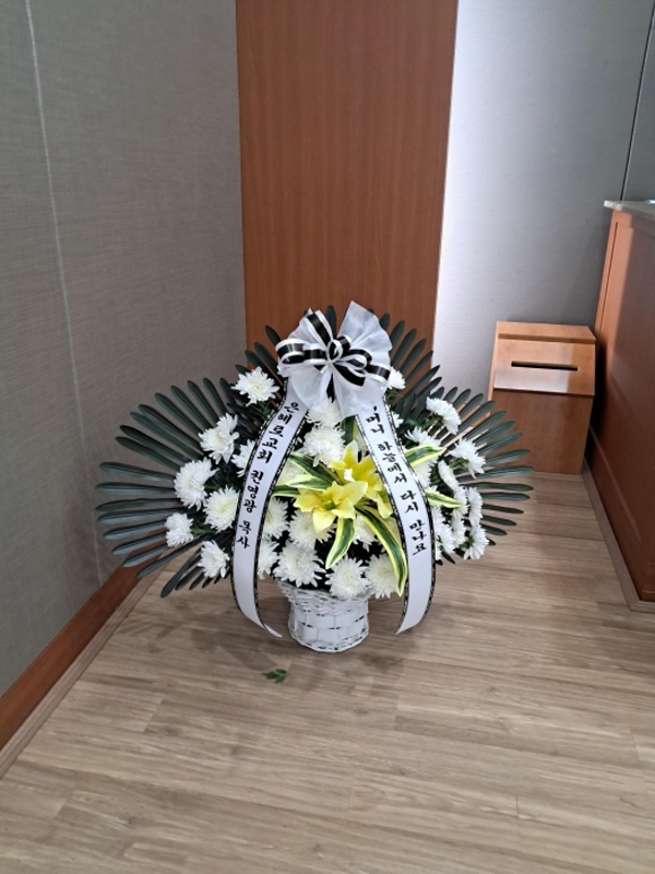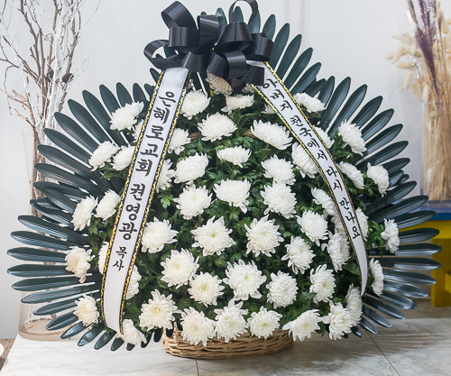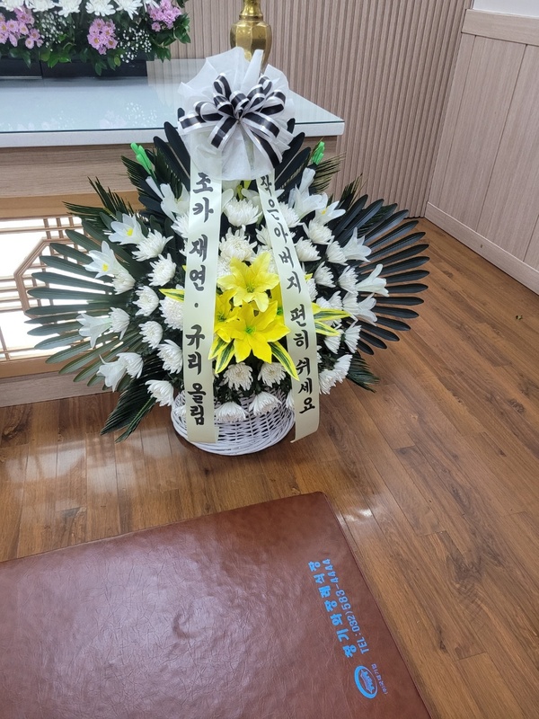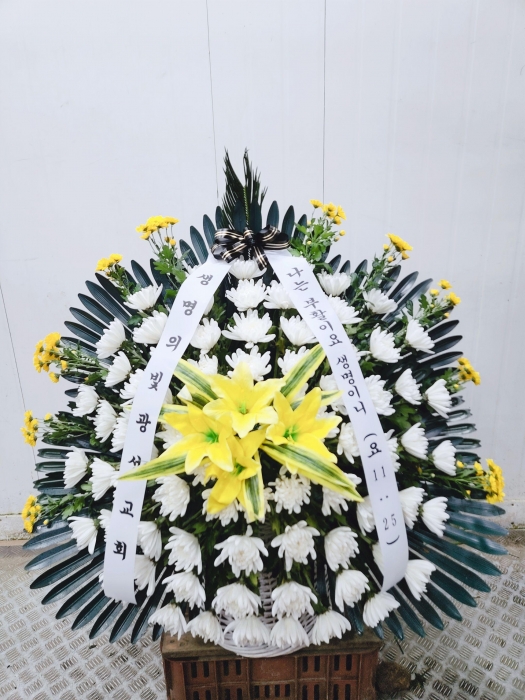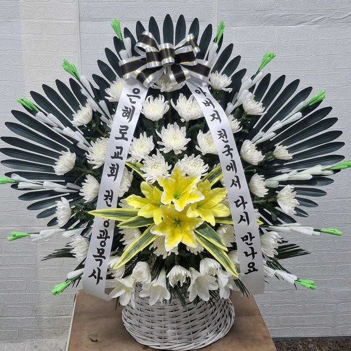 돌아가신 고인의 명복을 빌며 정성이 담긴 조문, 추도용 근조바구니를 보내세요.국화,금어초,청지목,도시로등으로 정성을 다했습니다