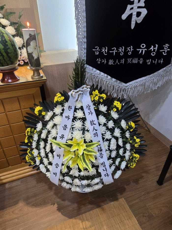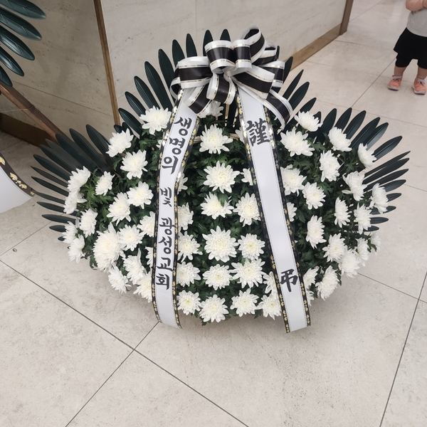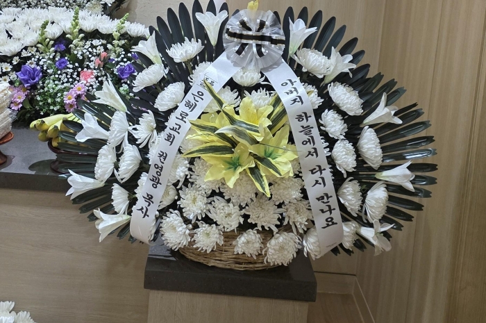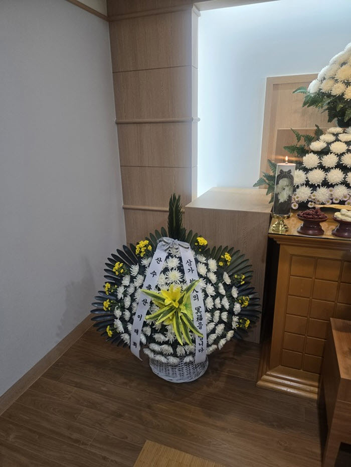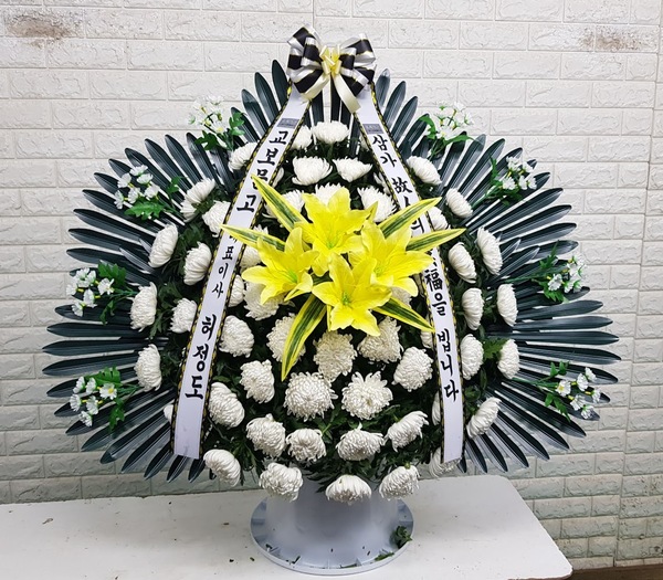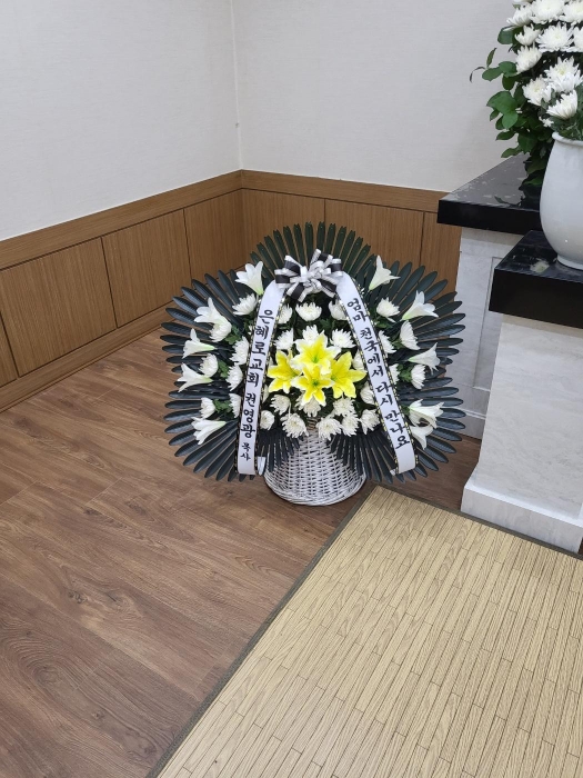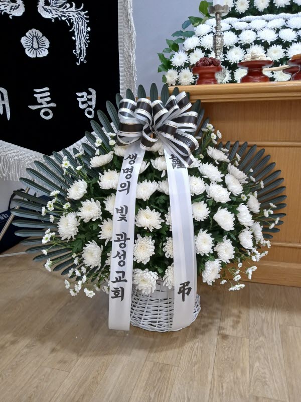 돌아가신 고인의 명복을 빌며 정성이 담긴 조문, 추도용 근조바구니를 보내세요.국화,금어초,청지목,도시로등으로 정성을 다했습니다