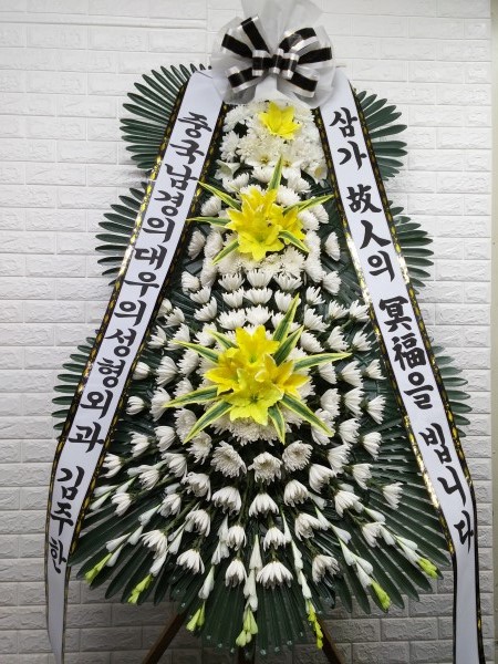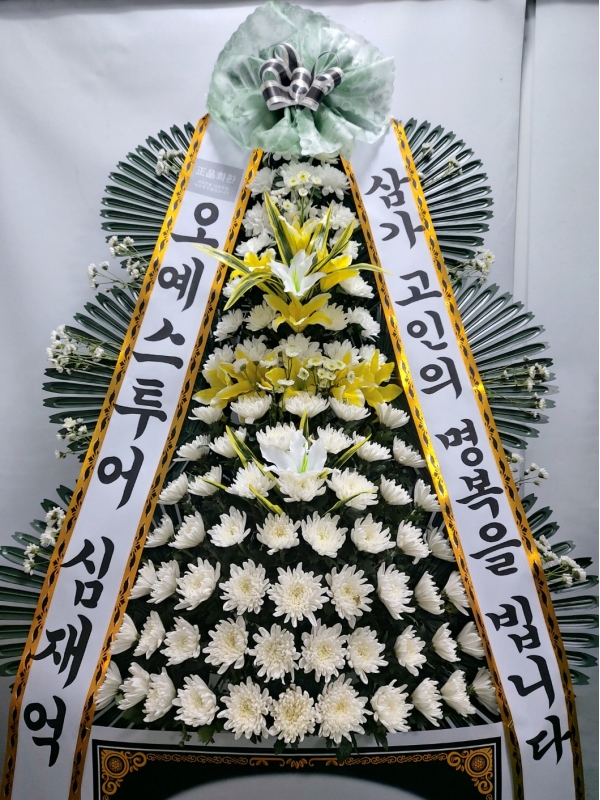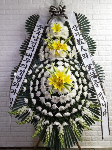 근조3단화환은 근조화환중에서 제일 키가 큽니다. 돌아가신 고인의 명복을 빌며 정성이 담긴 근조3단화환을 보내세요.국화,백합등과 같은 근조화환제작용 계절꽃이 더욱 풍성하게 꽂힙니다