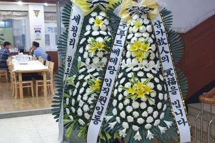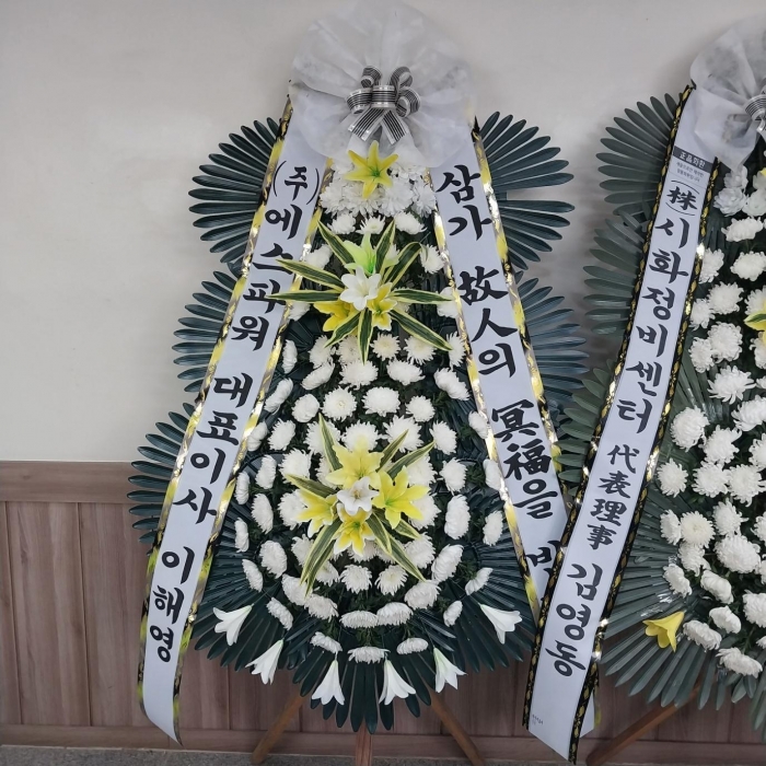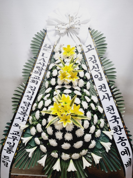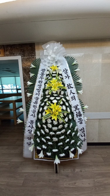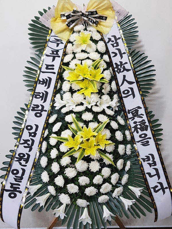 근조3단화환은 근조화환중에서 제일 키가 큽니다. 돌아가신 고인의 명복을 빌며 정성이 담긴 근조3단화환을 보내세요.국화,백합등과 같은 근조화환제작용 계절꽃이 더욱 풍성하게 꽂힙니다