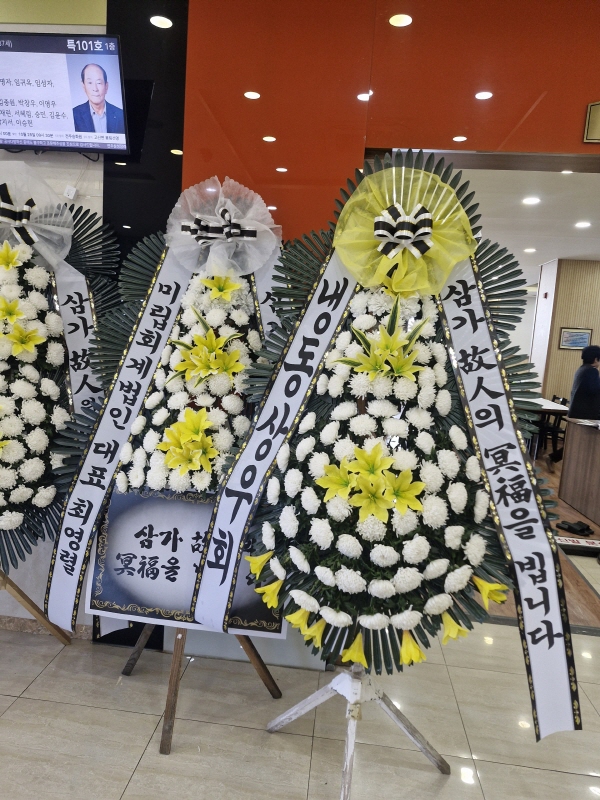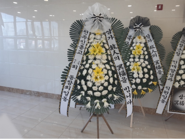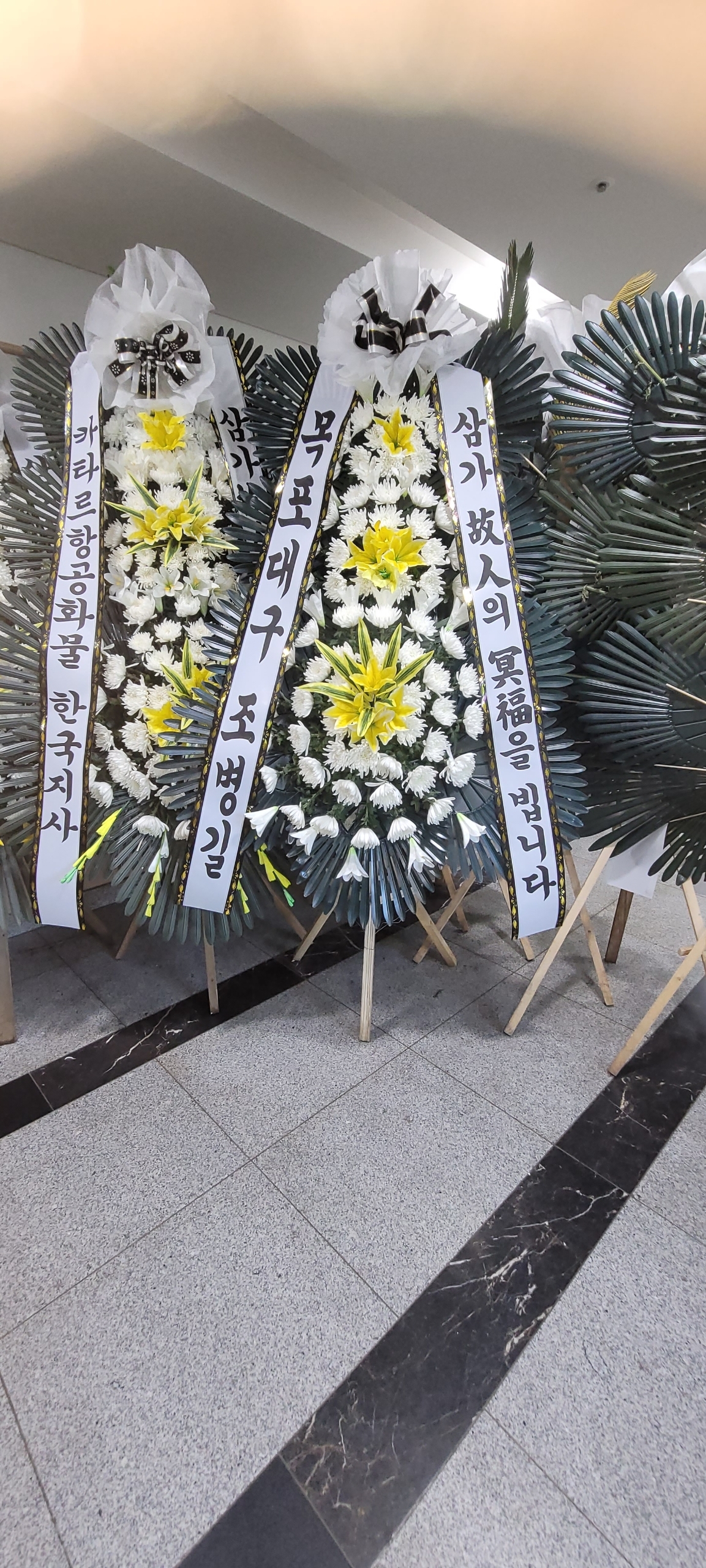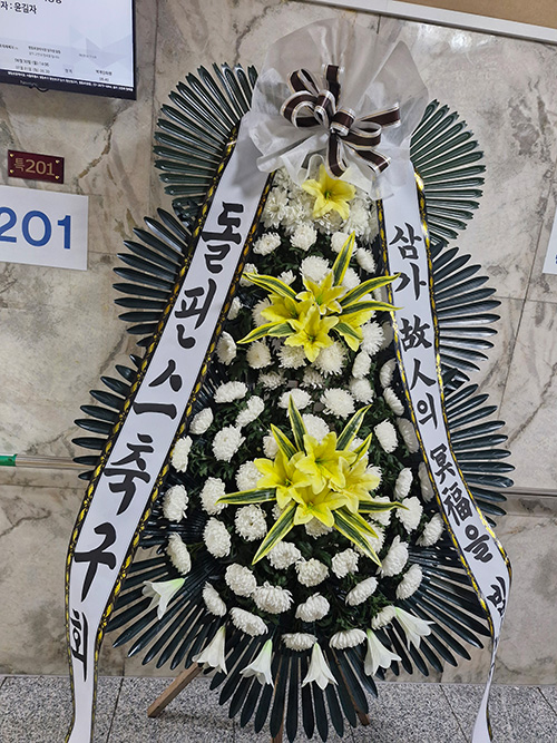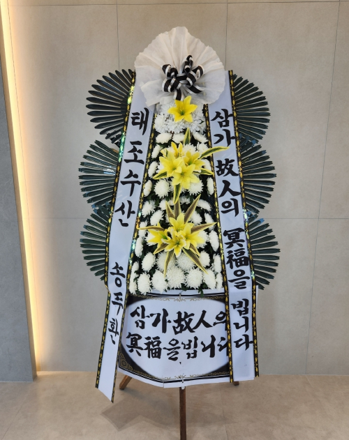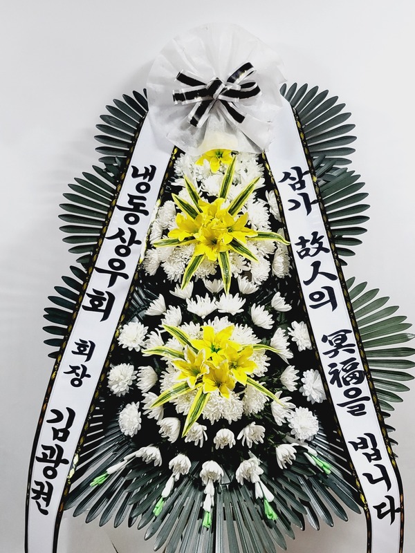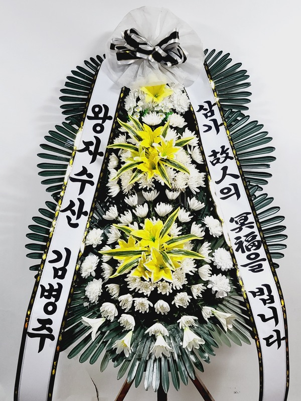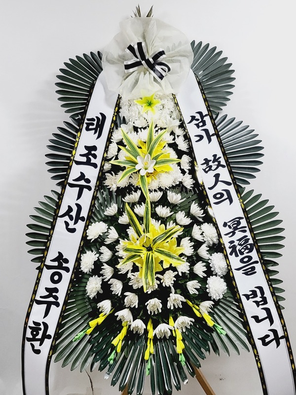 높이가 2m10cm이상인 근조3단화환은 근조화환중에서 제일 키가 큽니다. 돌아가신 고인의 명복을 빌며 정성이 담긴 근조3단화환을 보내세요.국화,백합등과 같은 근조화환제작용 계절꽃이 더욱 풍성하게 꽂힙니다.