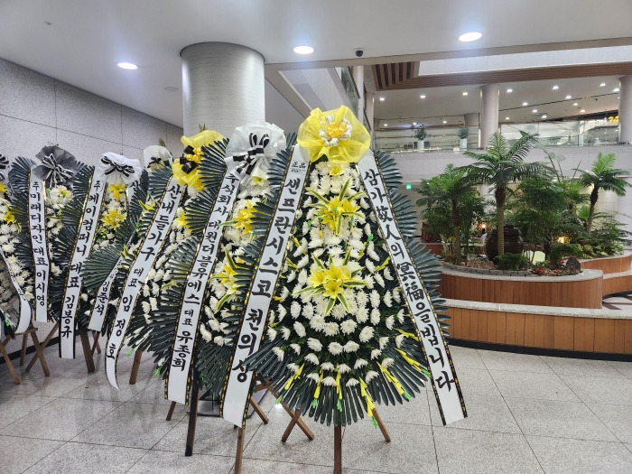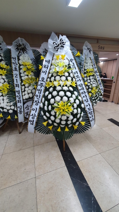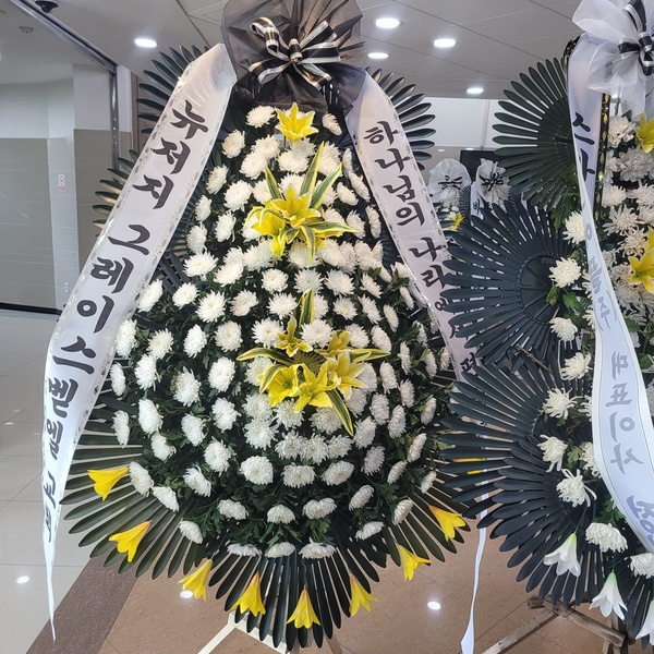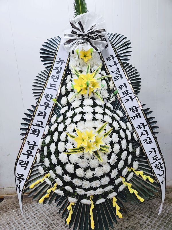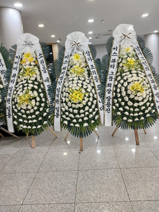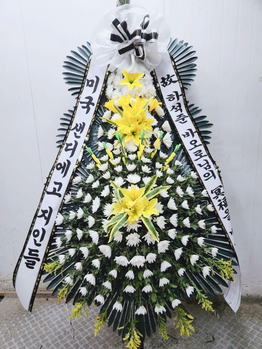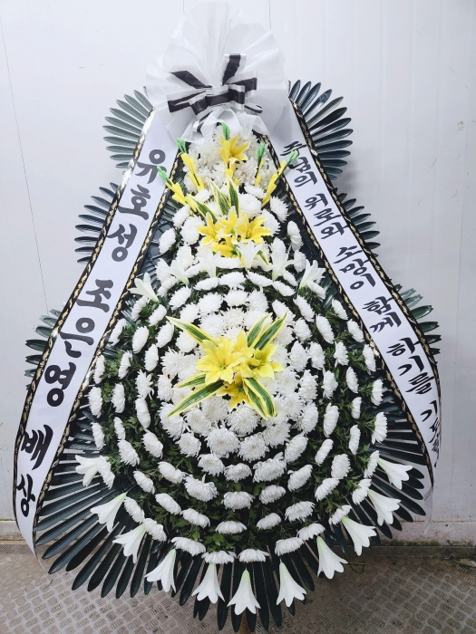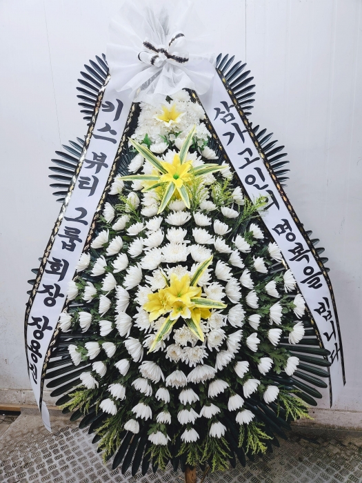 근조3단화환은 근조화환중에서 제일 키가 큽니다. 돌아가신 고인의 명복을 빌며 정성이 담긴 근조3단화환을 보내세요.국화,백합등과 같은 근조화환제작용 계절꽃이 더욱 풍성하게 꽂힙니다