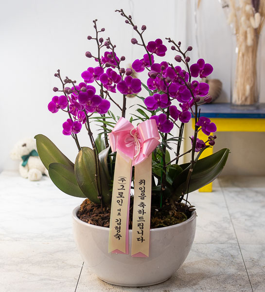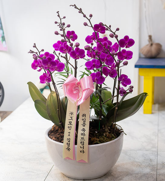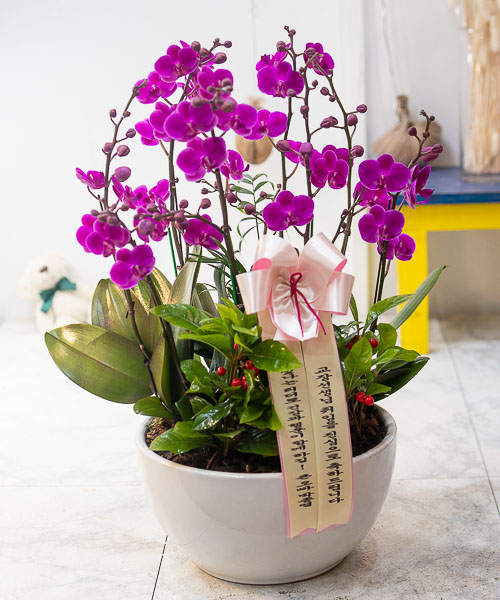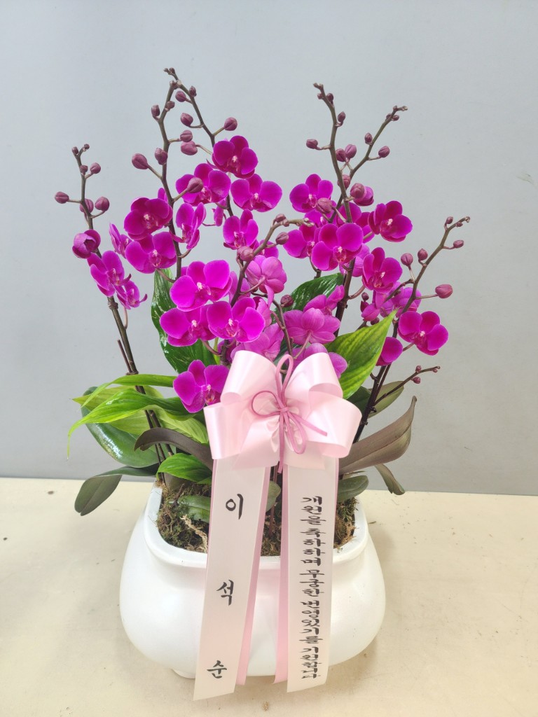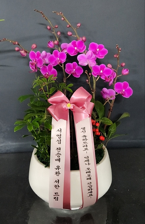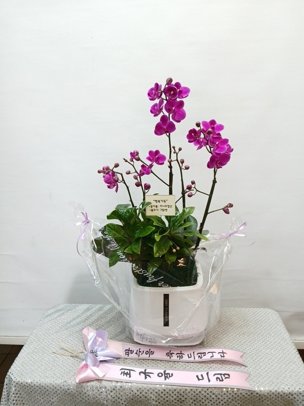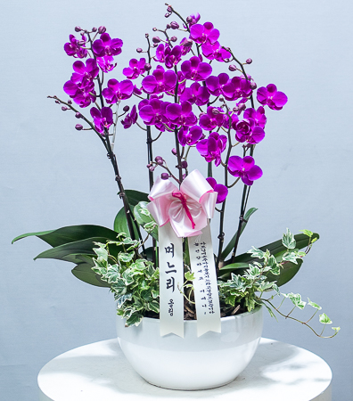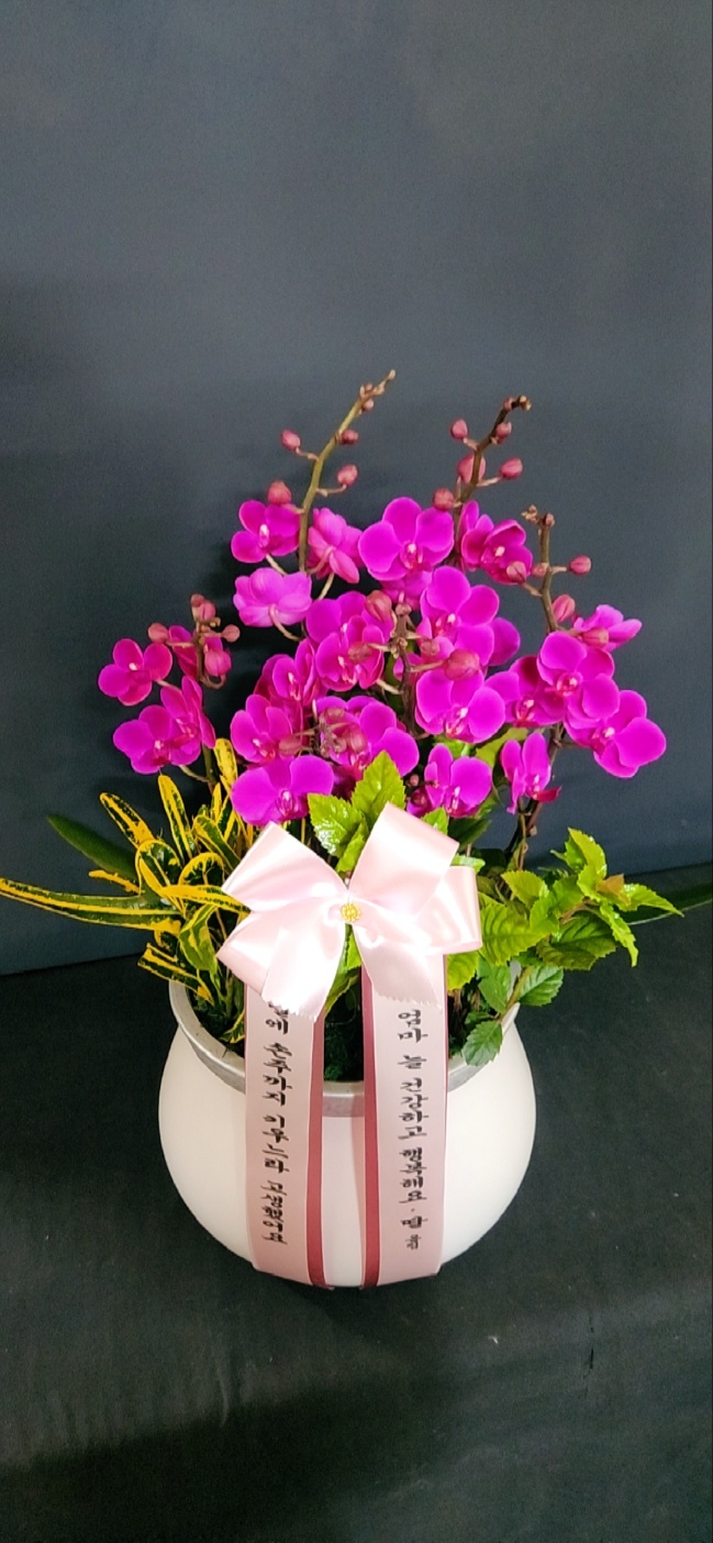 호접란 만천홍은 꽃의 크기가 작지만 색깔이 진하고 오래 볼 수 있어서 누구나 좋아하는 양란입니다. 생일축하, 승진, 영전, 취임, 전시회등 각종 축하의 자리에 좋습니다.