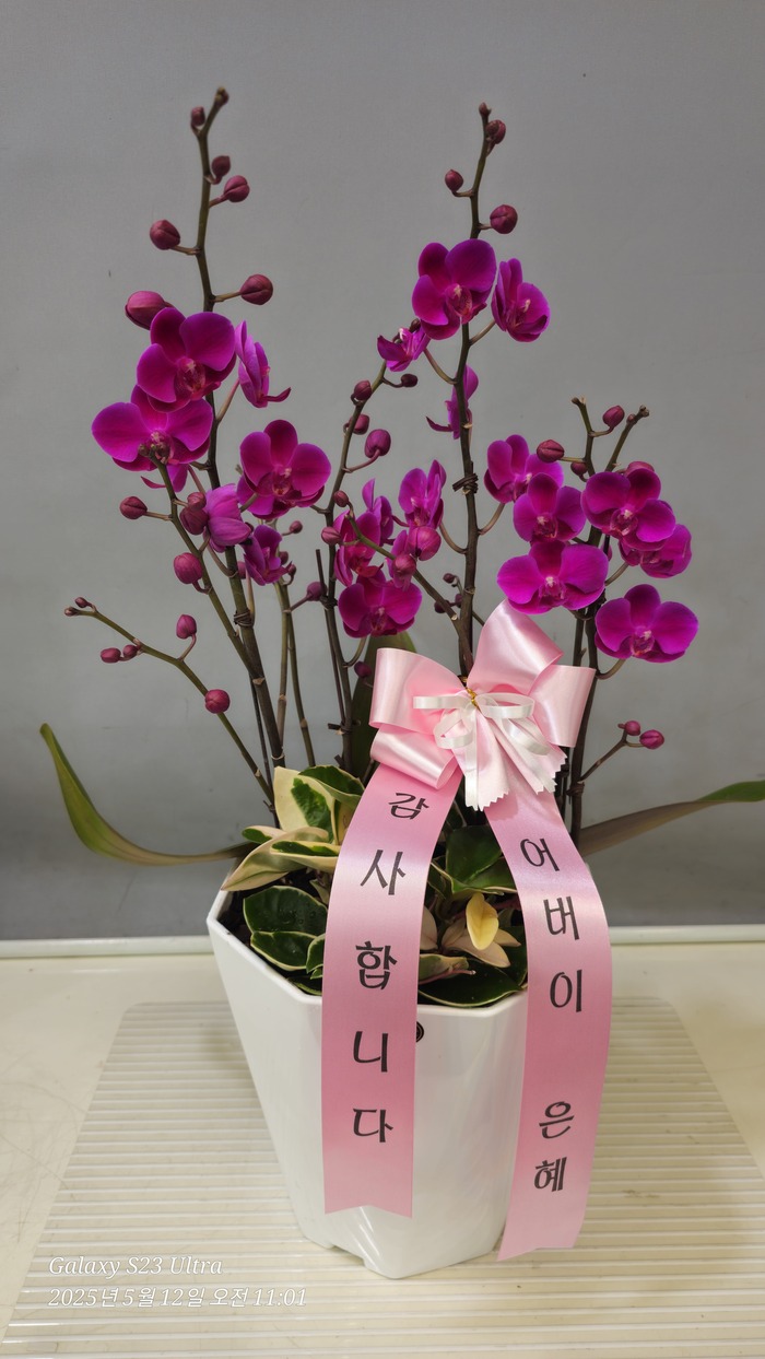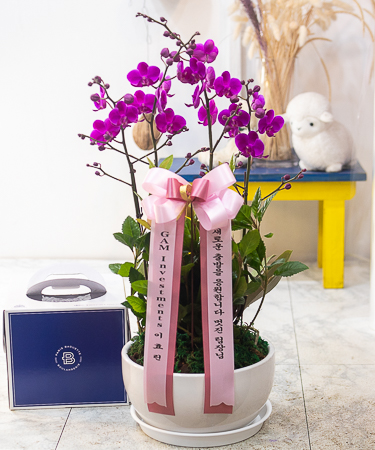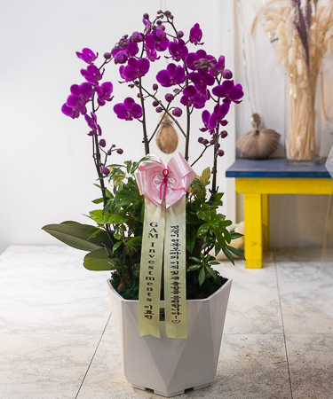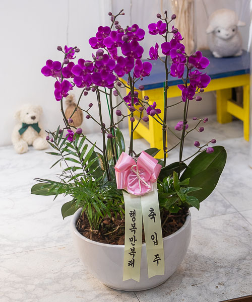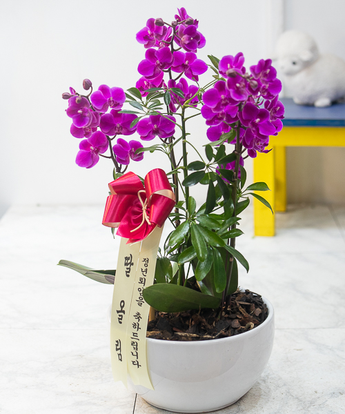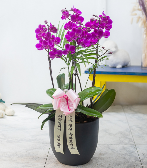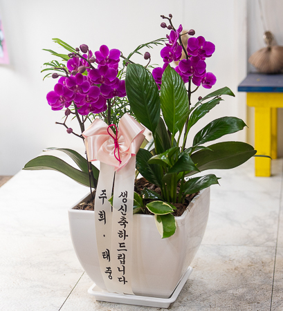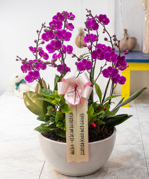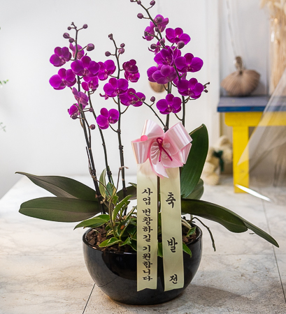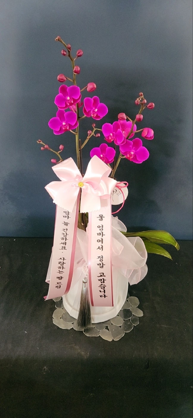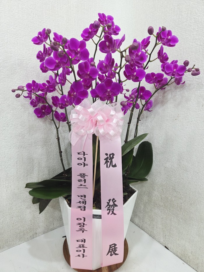 호접란 만천홍은 꽃의 크기가 작지만 색깔이 진하고 오래 볼 수 있어서 누구나 좋아하는 양란입니다. 생일축하, 승진, 영전, 취임, 전시회등 각종 축하의 자리에 좋습니다.