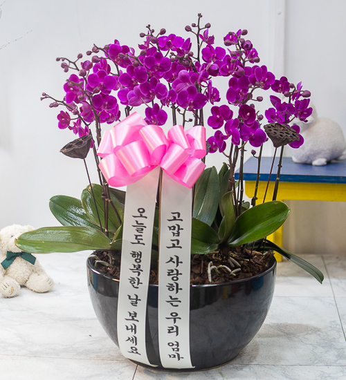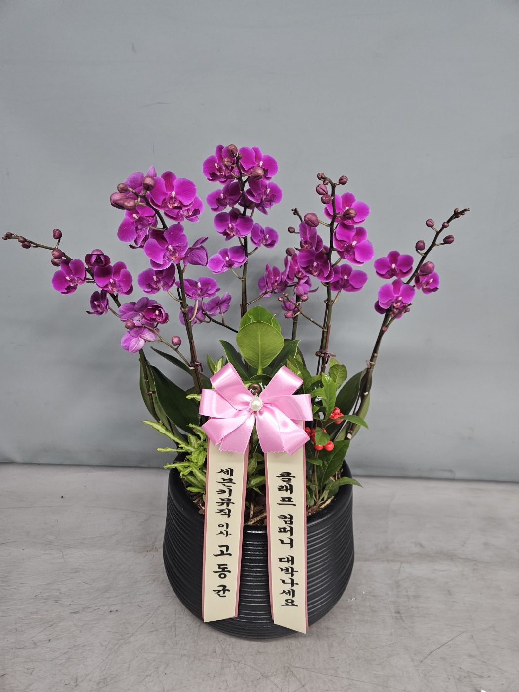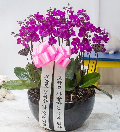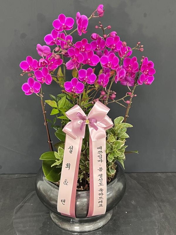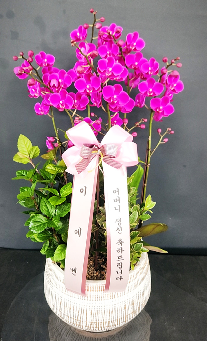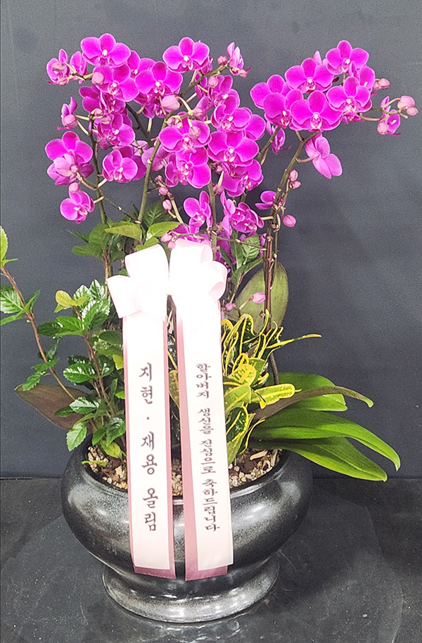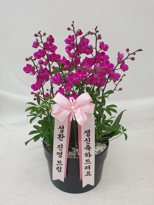 한국인이 제일 좋아하는 서양란 만천홍입니다. 개업식, 창립기념행사, 전시회, 연주회, 집들이, 승진, 취임 등 각종 특별한날 축하 선물용으로 적합한 화분입니다.