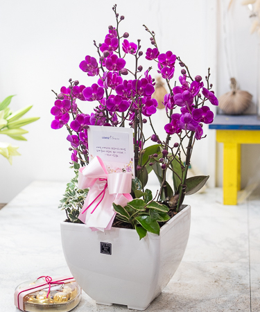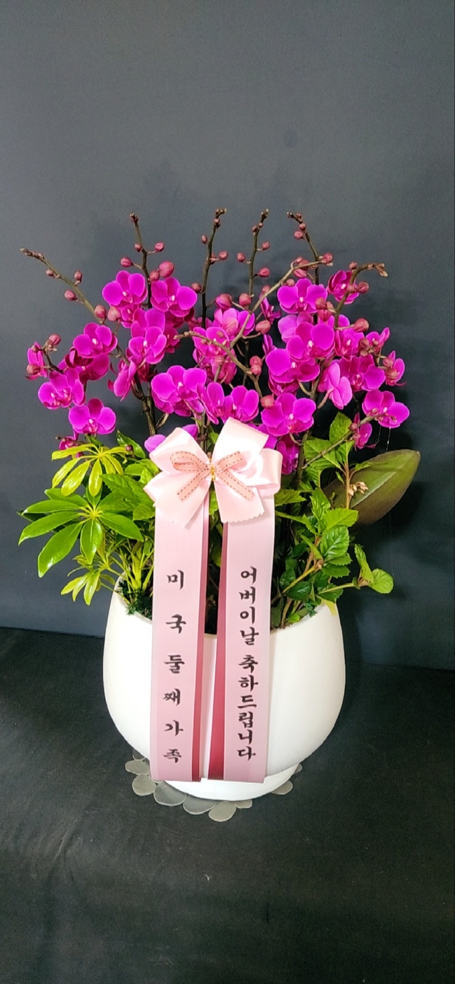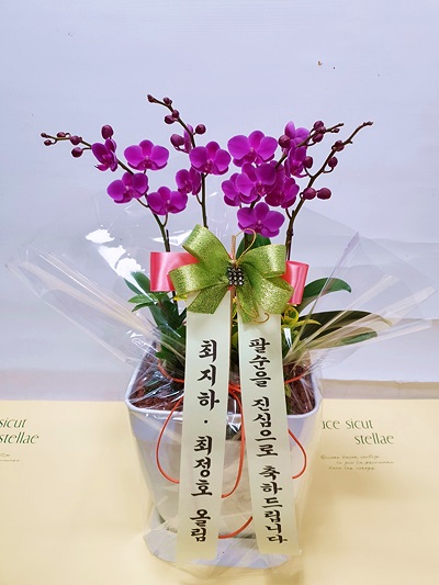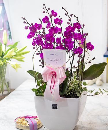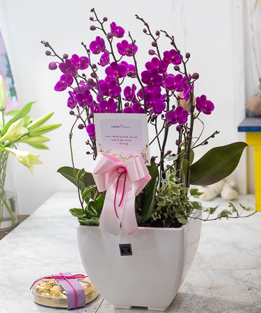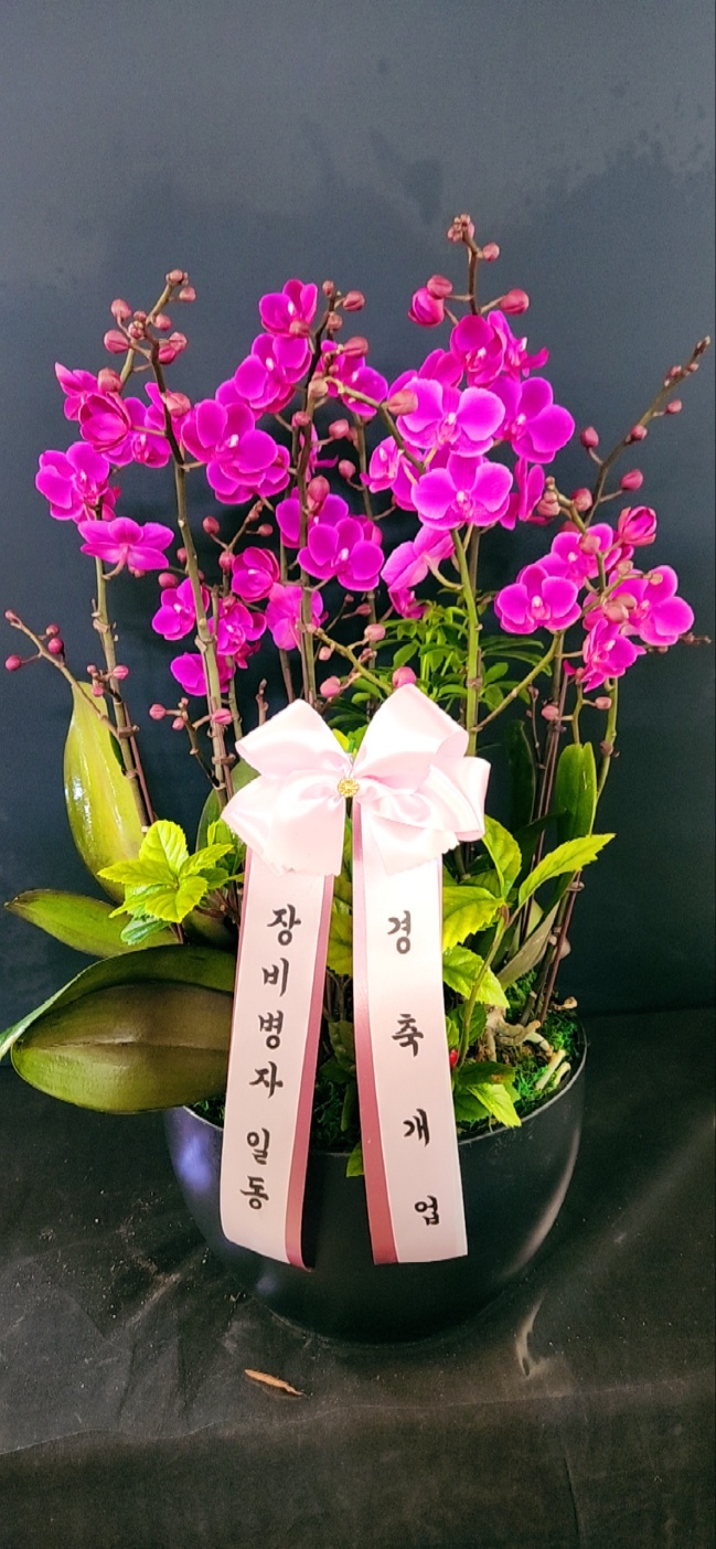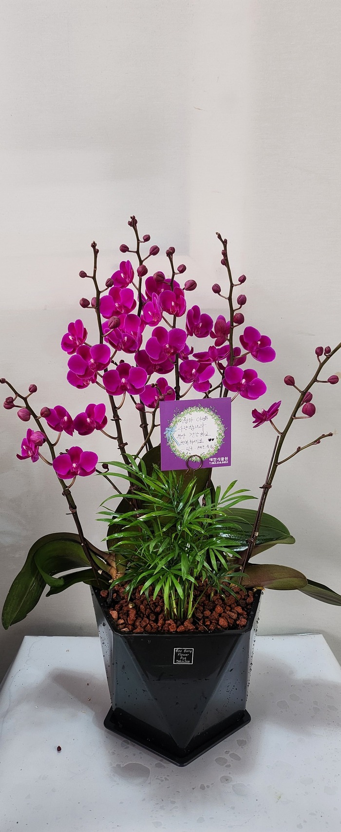 한국인이 제일 좋아하는 서양란 만천홍입니다. 개업식, 창립기념행사, 전시회, 연주회, 집들이, 승진, 취임 등 각종 특별한날 축하 선물용으로 적합한 화분입니다.