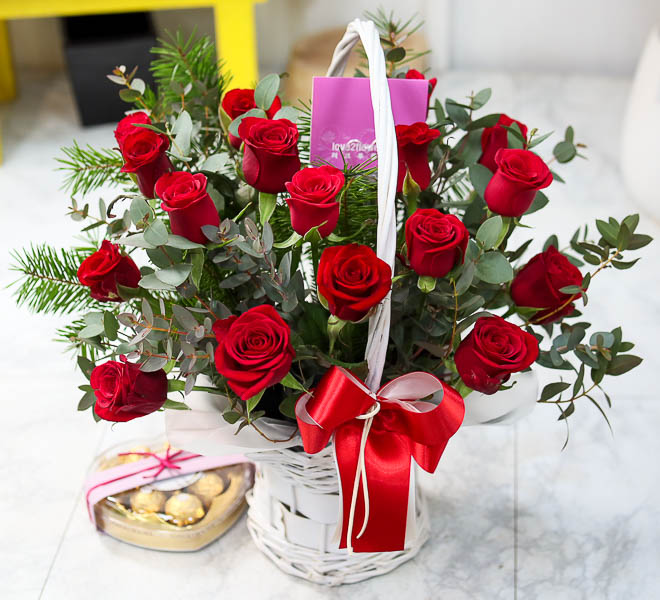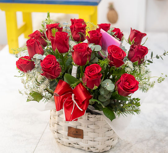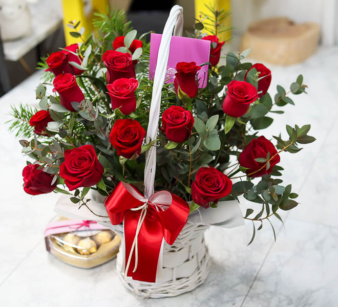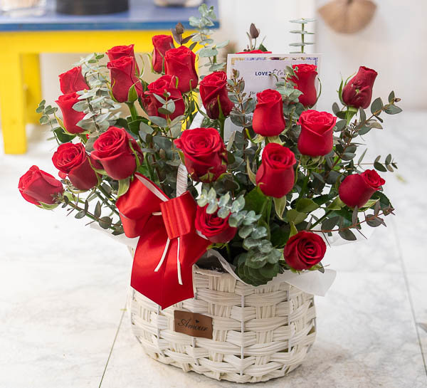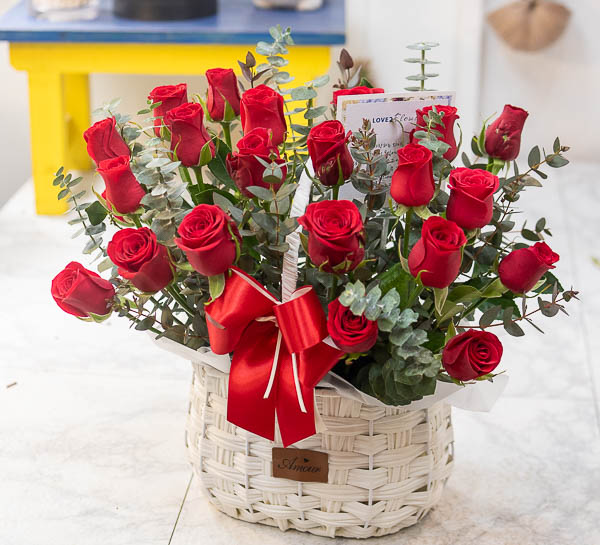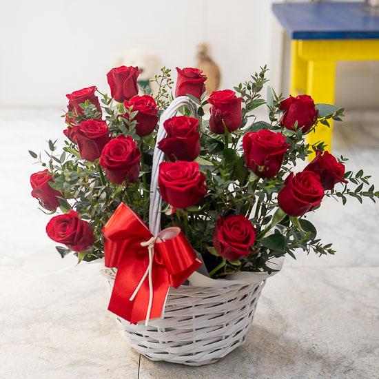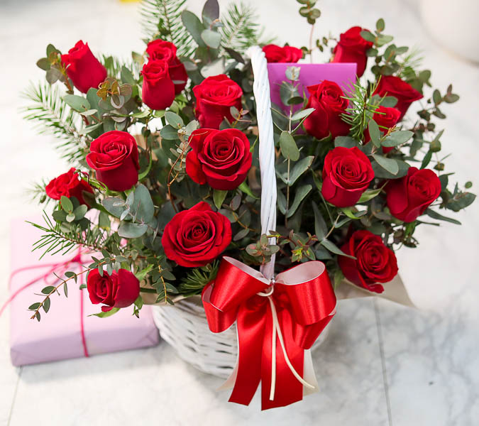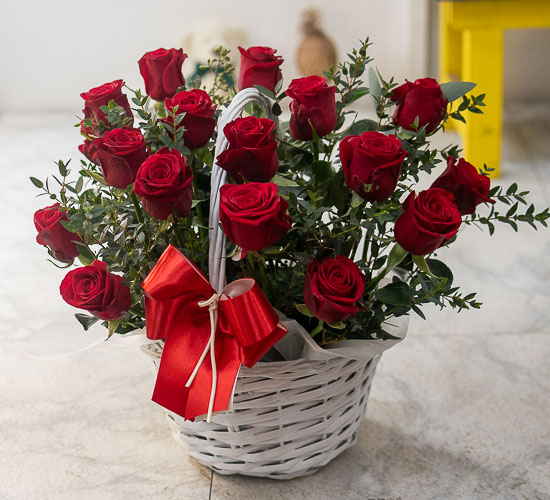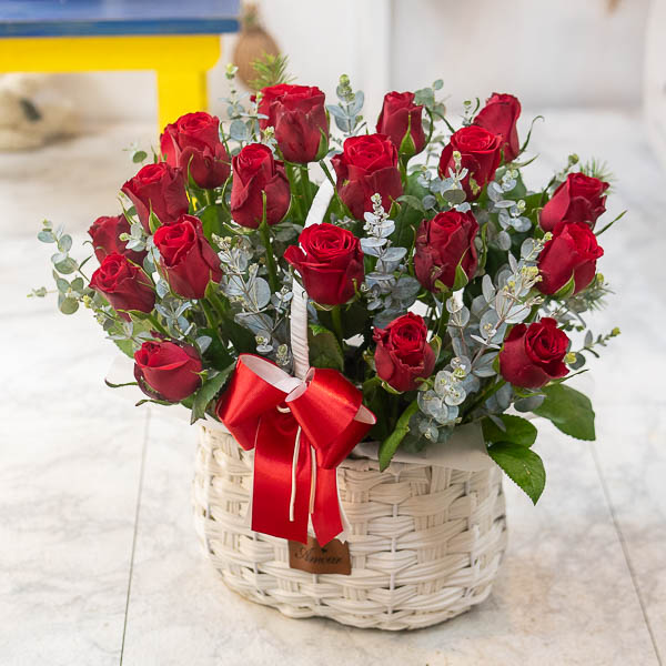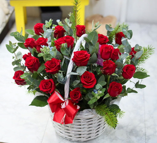 정열적이면서 낭만적인 느낌을 싱싱한 고급 빨강장미를 사용해 연출해보았습니다.오늘의 주인공이신 그분에게 정열과 낭만을 전해보세요. 네프로네프스,편백등 녹색의 소재를 사용하여 빨강장미를 더욱 강조하였습니다