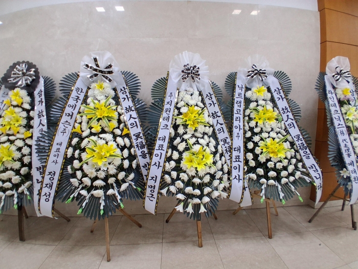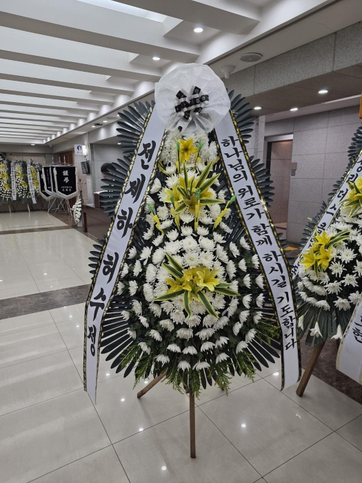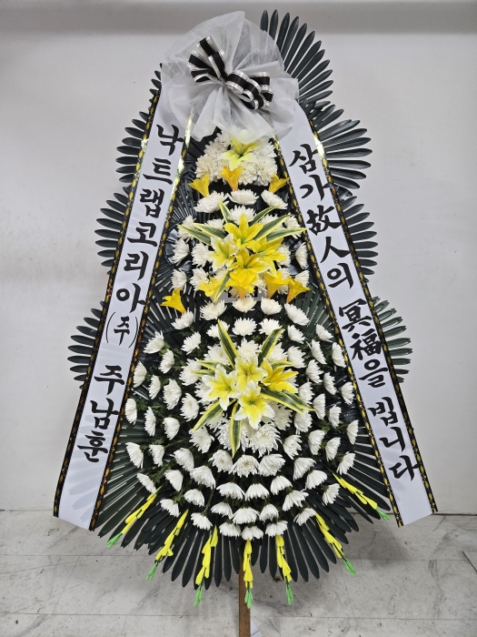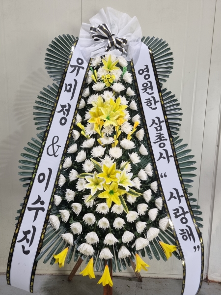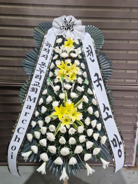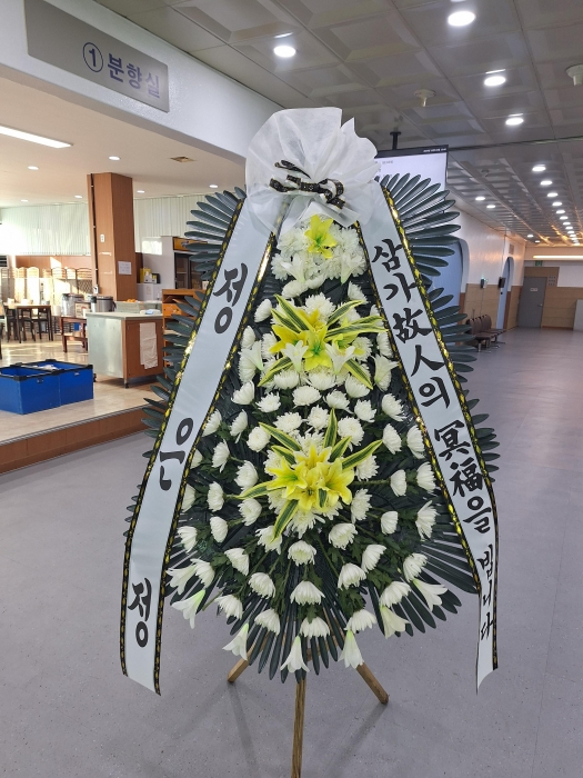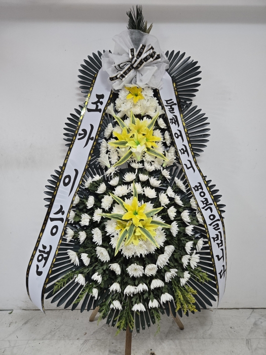 근조3단화환은 근조화환중에서 제일 키가 큽니다. 돌아가신 고인의 명복을 빌며 정성이 담긴 근조3단화환을 보내세요.국화,백합등과 같은 근조화환제작용 계절꽃이 더욱 풍성하게 꽂힙니다